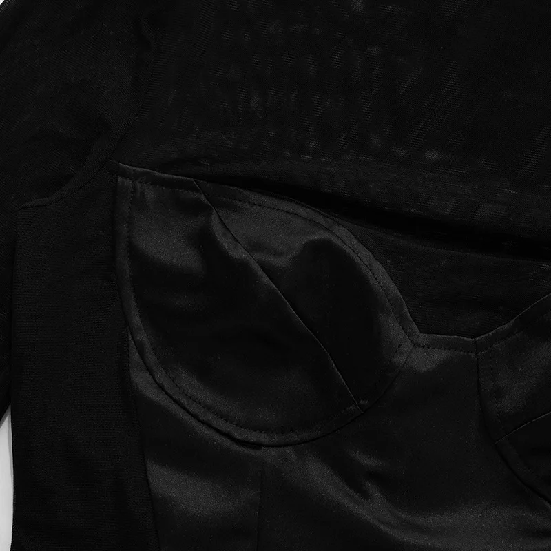 Trendix Mini abito a maniche lunghe in rete alla moda Club See Through Dolcevita Splice Hollow Body Dress Party Hot Girls Abito sexy 1Trendix Mini abito a maniche lunghe in rete alla moda Club See Through Dolcevita Splice Hollow Body Dress Party Hot Girls Abito sexy