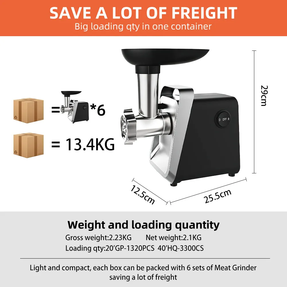 Viene fornito con tre piastre da taglio in acciaio resistenti (5 mm, 7 mm, a forma di ventaglio) per una macinazione grossolana, media o fine.Include 4 accessori per ripieno di salsicce per realizzare stili diversi come italiani o hot dog.