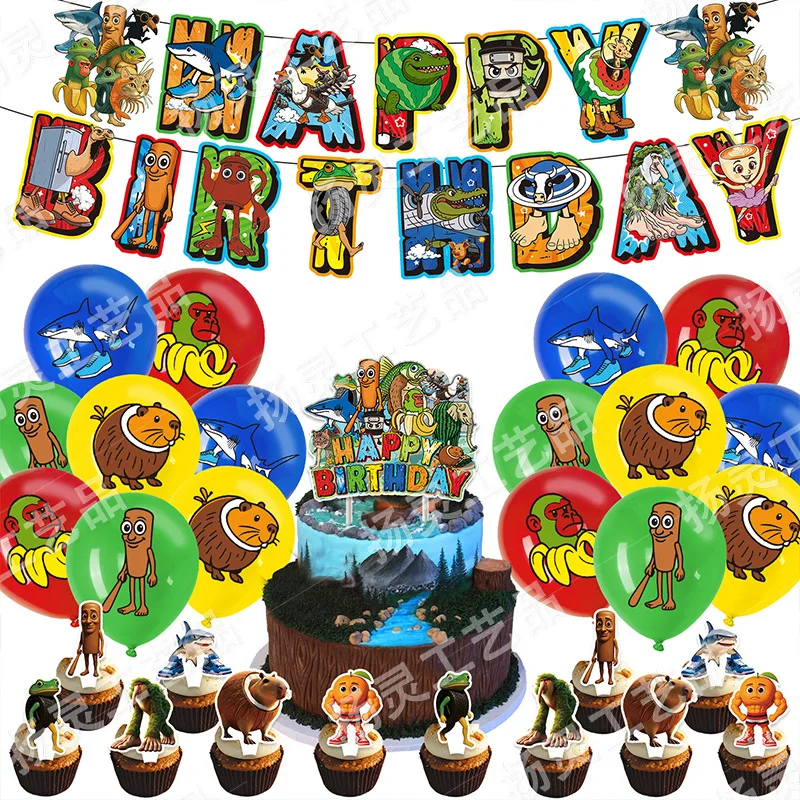 Tung Tung Sahur Forniture per feste di compleanno Brainrot Tralalelo Tralala Banner Torta Top Banner Palloncino Divertente Meme Anime Decorazioni per la casa
