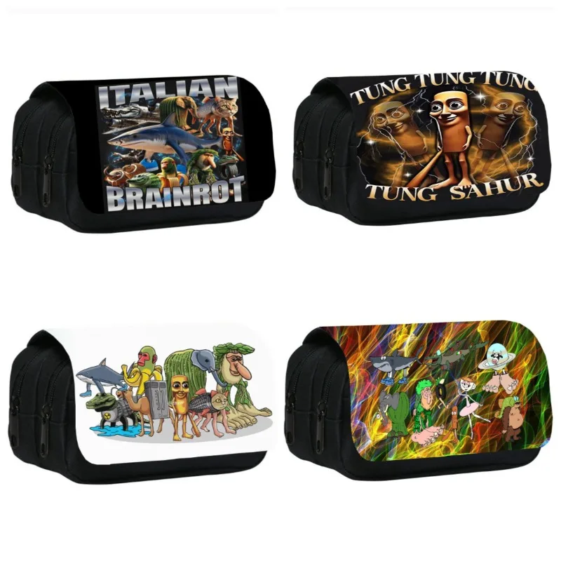 Tung Tung Tung Sahur Italian Brainrot Meme Astuccio per matite Astuccio per penne Borse per ragazze Ragazzi Grande spazio di archiviazione Astuccio per cosmetici per la scuola degli studenti