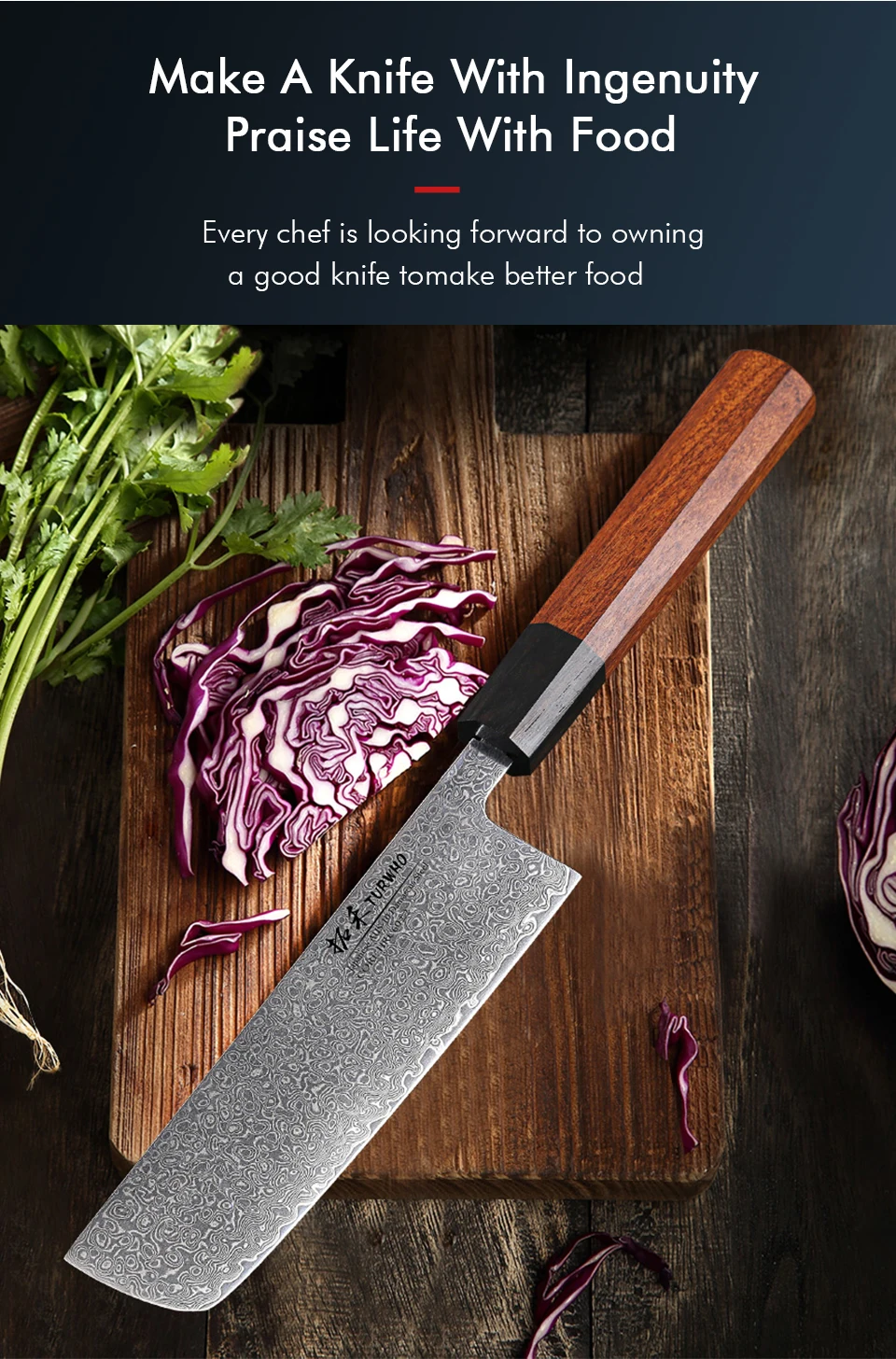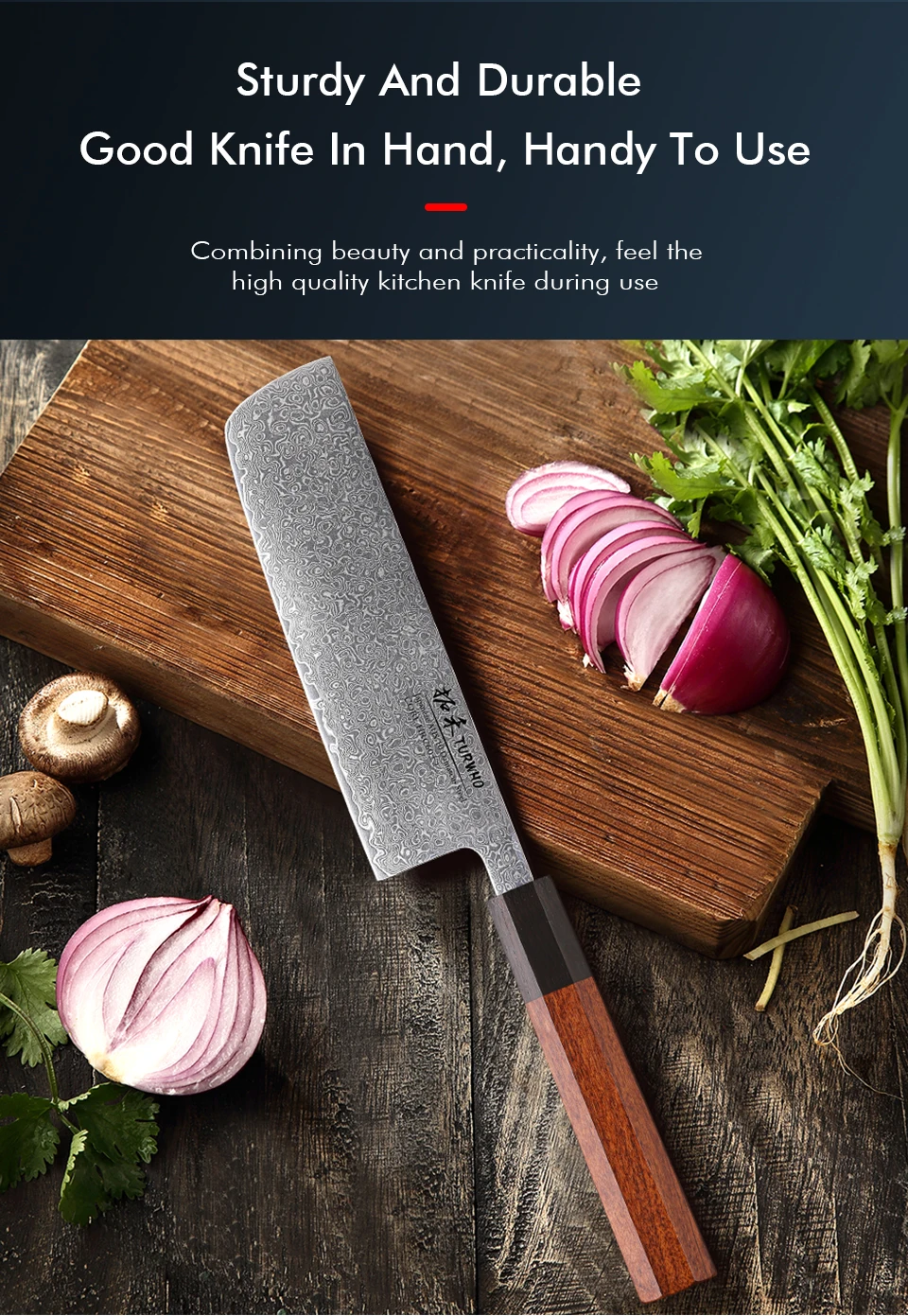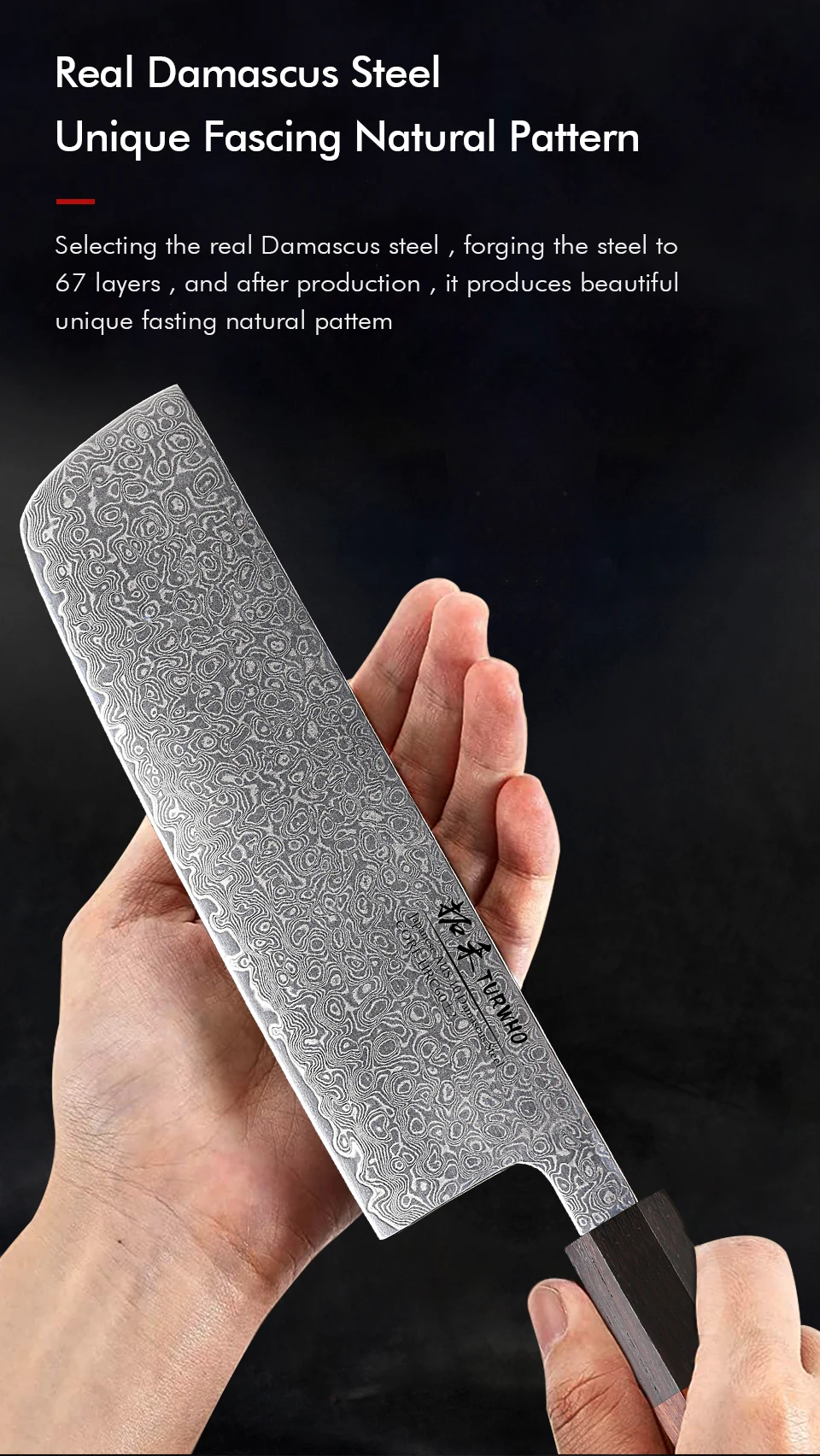 TURWHO Coltello Nakiri da 6,5 pollici 67 strati Coltello da cucina professionale in acciaio di Damasco Coltello da cuoco Verdure giapponesi Strumenti di cottura della carne Posate