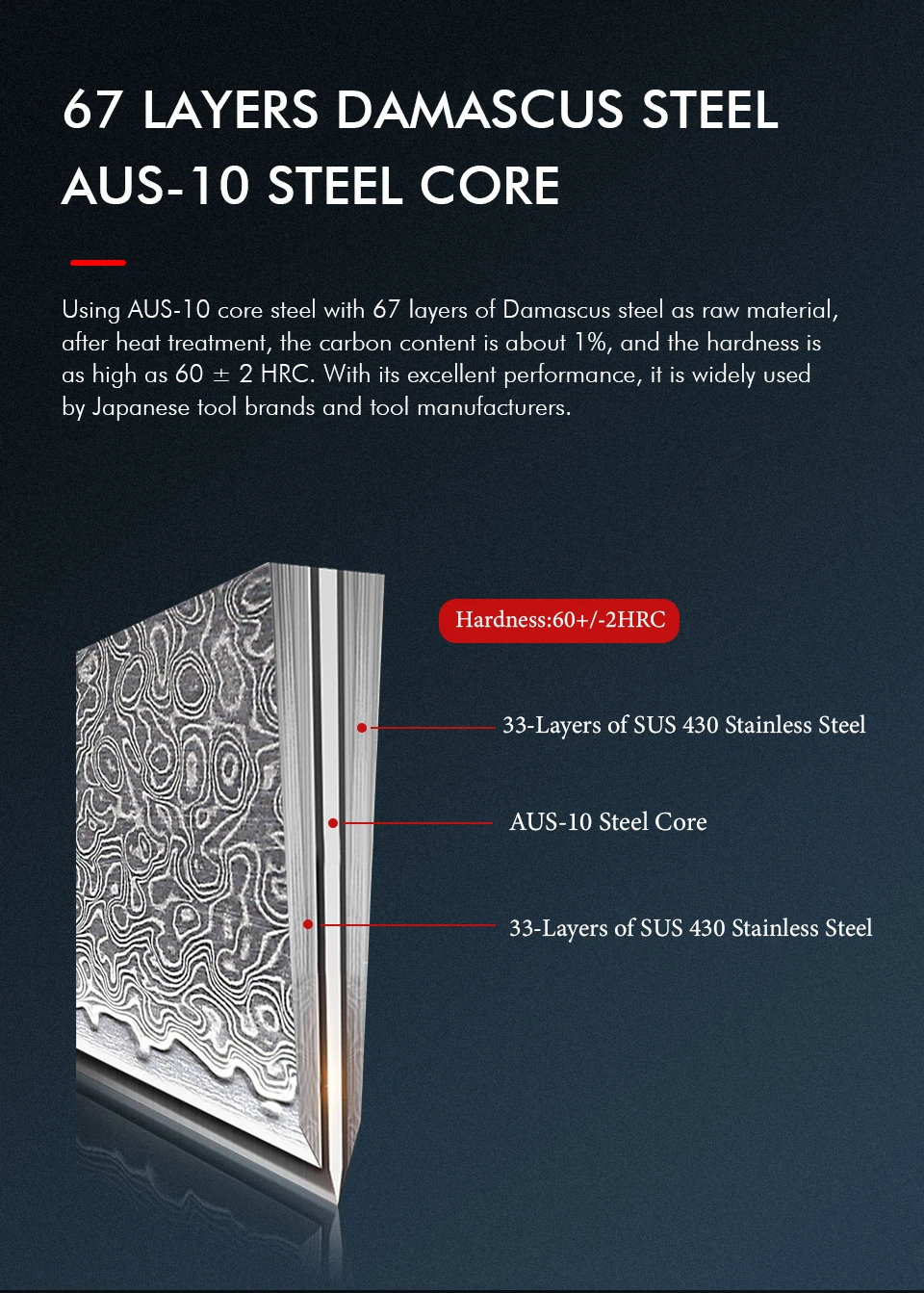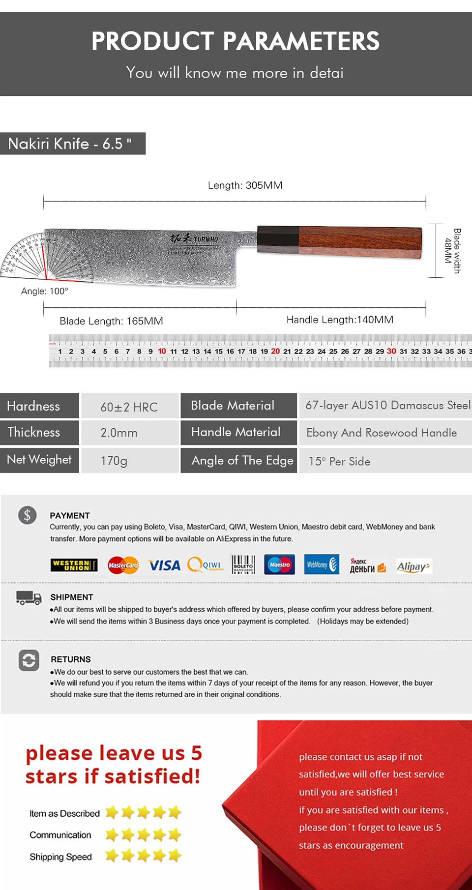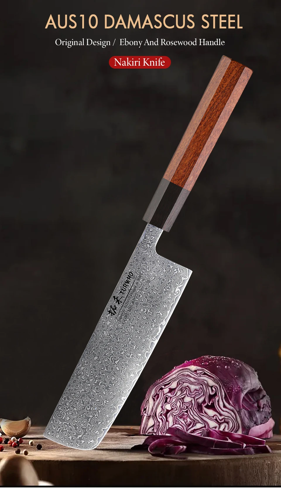 TURWHO Coltello Nakiri da 6,5 pollici 67 strati Coltello da cucina professionale in acciaio di Damasco Coltello da cuoco Verdure giapponesi Strumenti di cottura della carne Posate