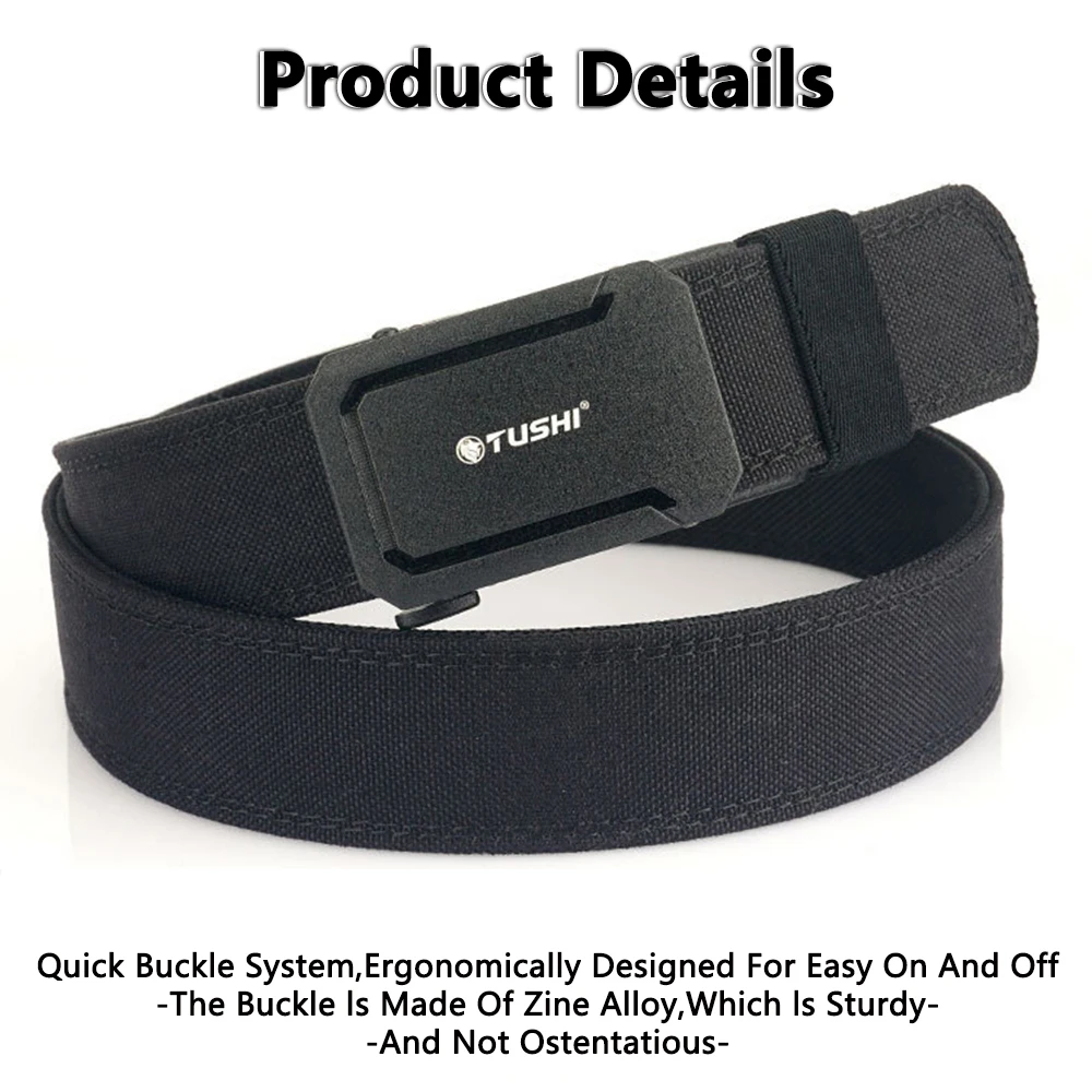 Colore: 4 coloriMateriale: lega, nylonMisura della cintura: 120 cm-150 cm di lunghezza, 3,8 cm di larghezzaCaratteristiche: forte e resistente, stretto, resistente all’usura, ad asciugatura rapida, sgancio rapidoAdatto per: militare, ciclismo, caccia, sci, escursionismo,IPSC, EDC, Quotidiano, ecc.