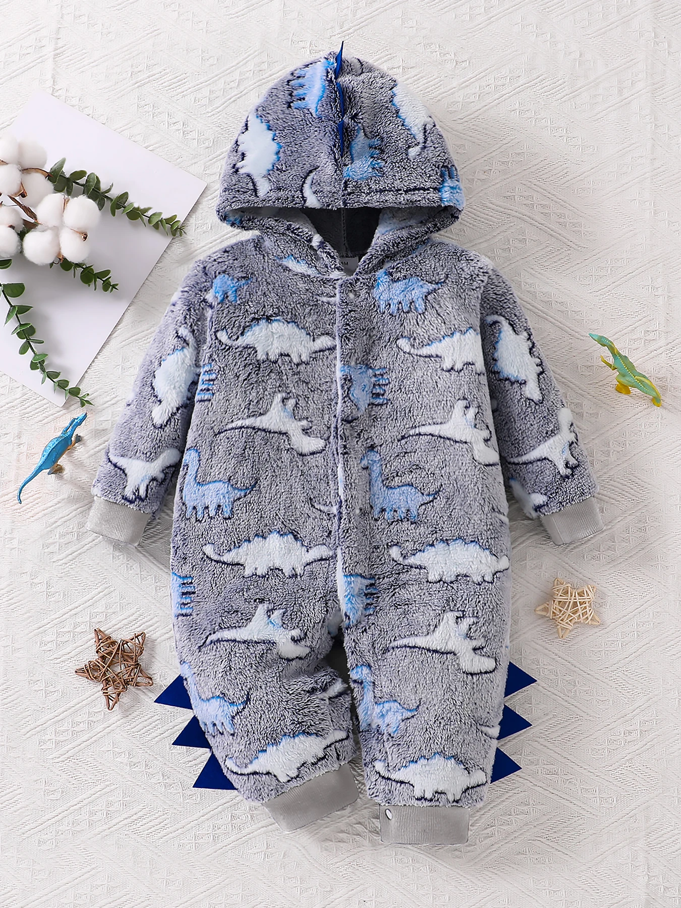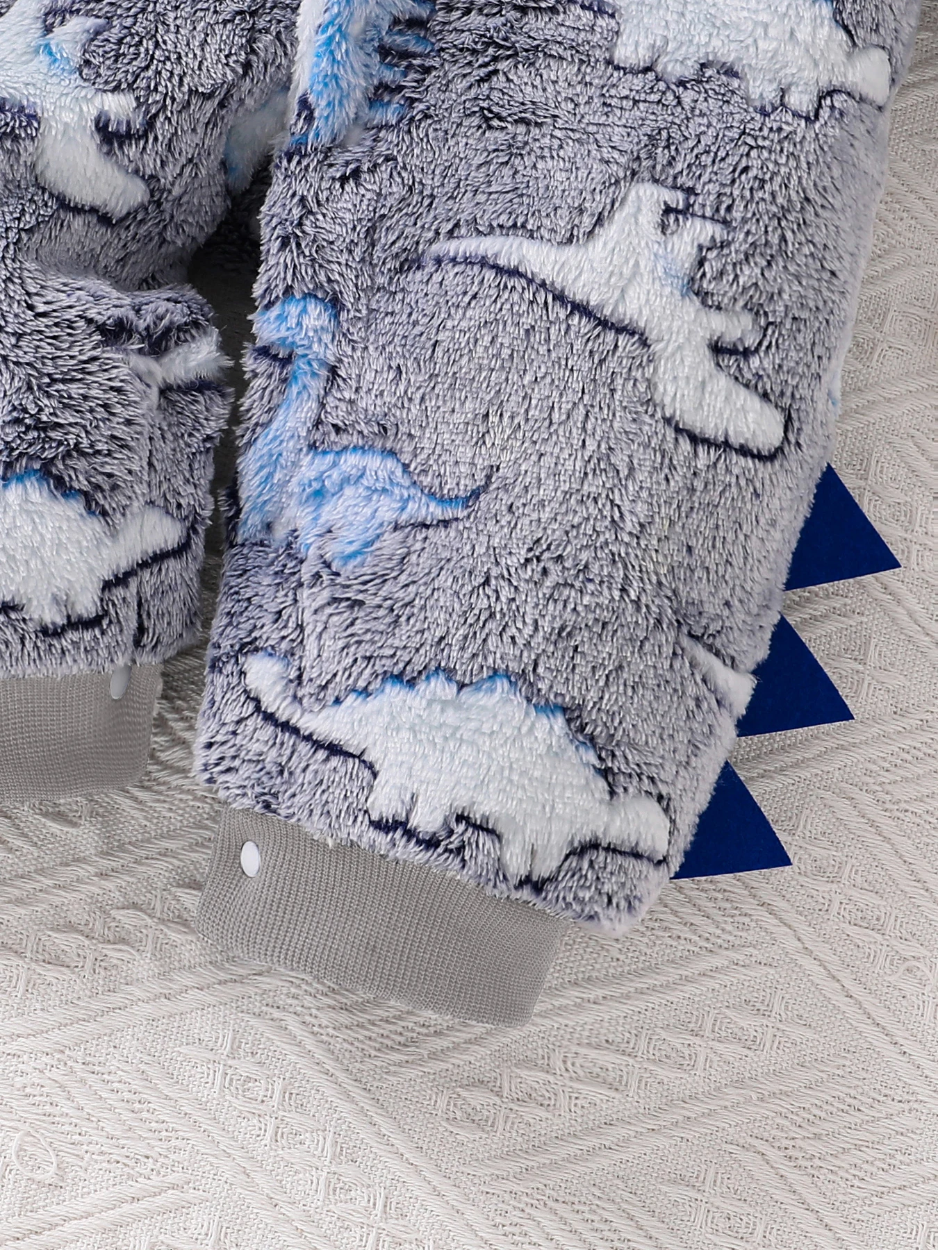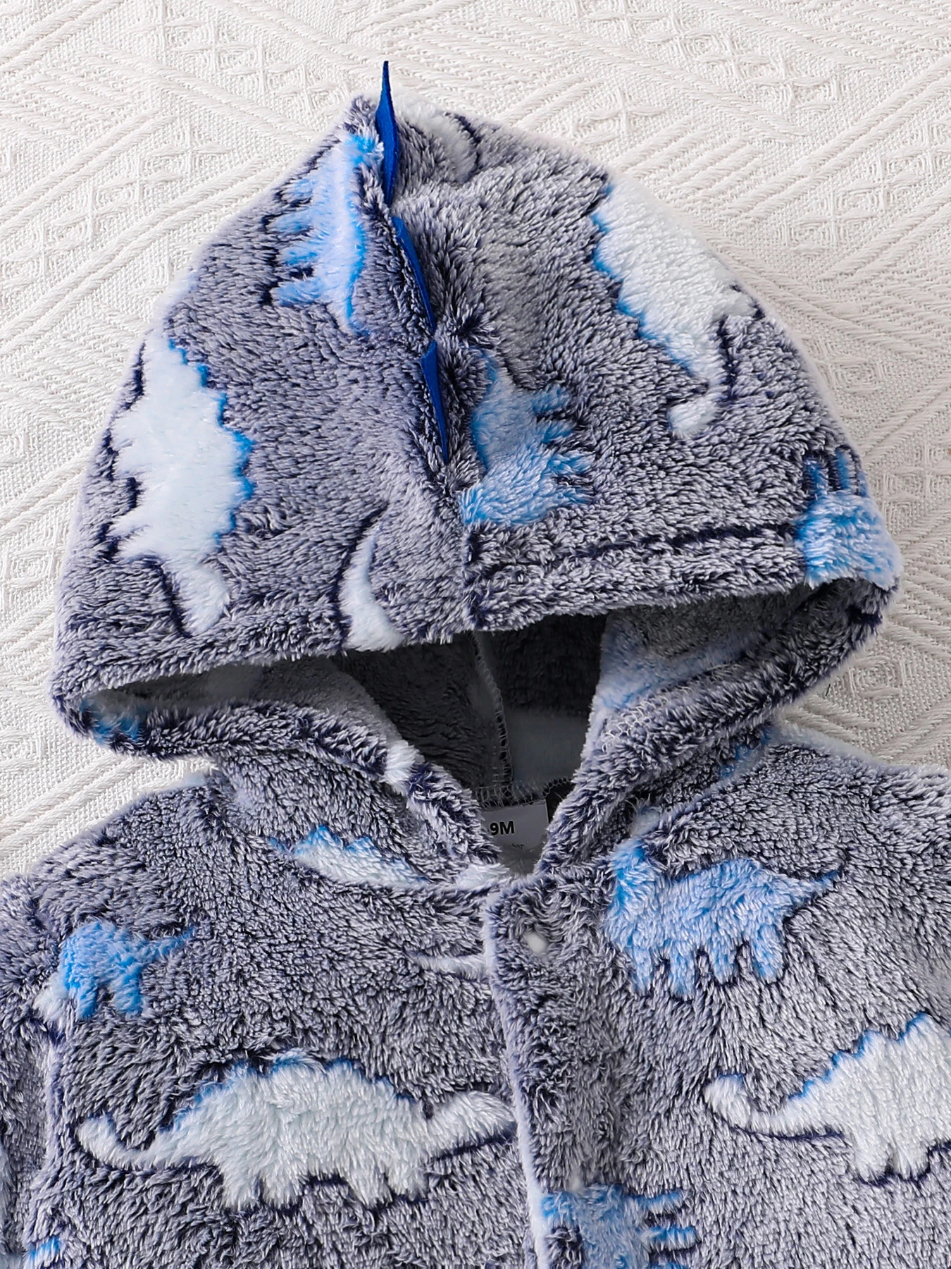 Tuta con cappuccio per bambina autunno e inverno lavorata a maglia con motivo a dinosauro, abbigliamento invernale casual, confortevole, alla moda e alla moda per neonate, vestiti striscianti per bambini, vestiti pelosi caldi