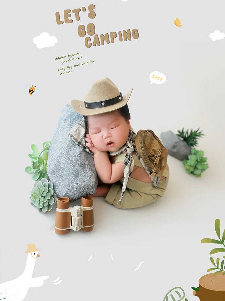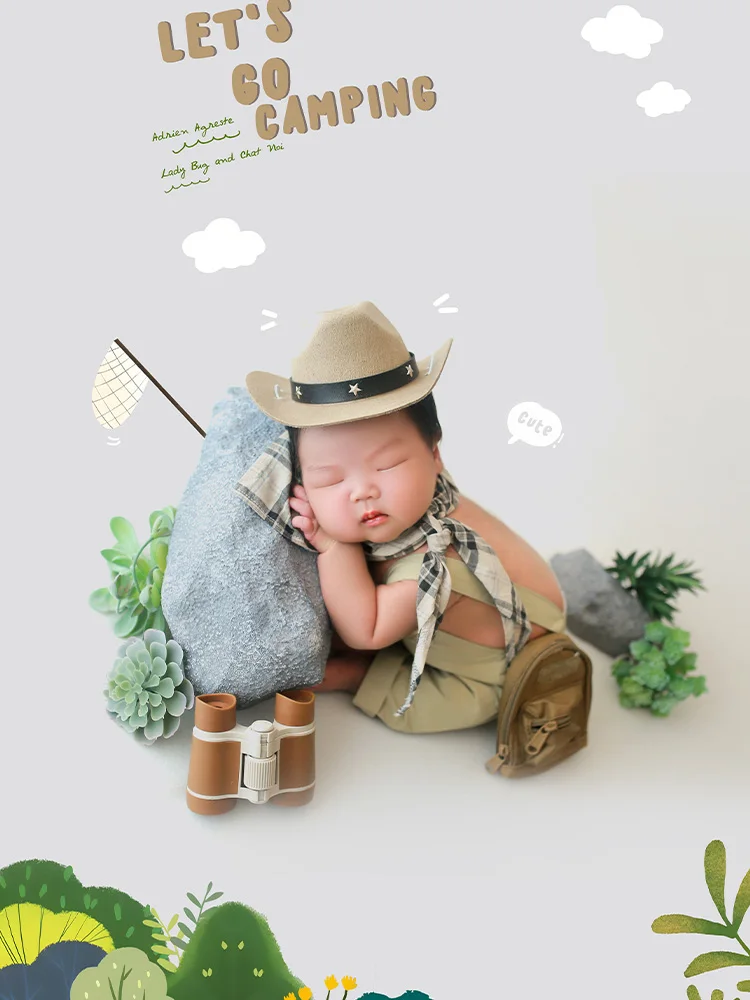 Tuta da neonato tuta da Cowboy cappello da Cowboy sciarpa a triangolo tuta da esploratore fotografia neonato vestito binocolo zaino servizio fotografico Prop
