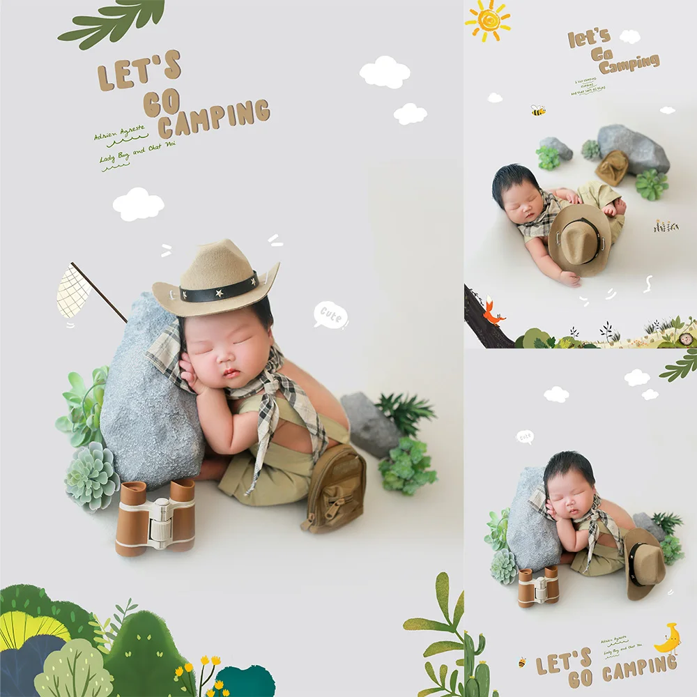 Dimensioni: dimensioni libere Adatto per: 0-1 mese bambino Genere: ragazzo/ragazza Il pacchetto Include: coperta di sfondo, completo, pianta verde, oggetti di scena per foto