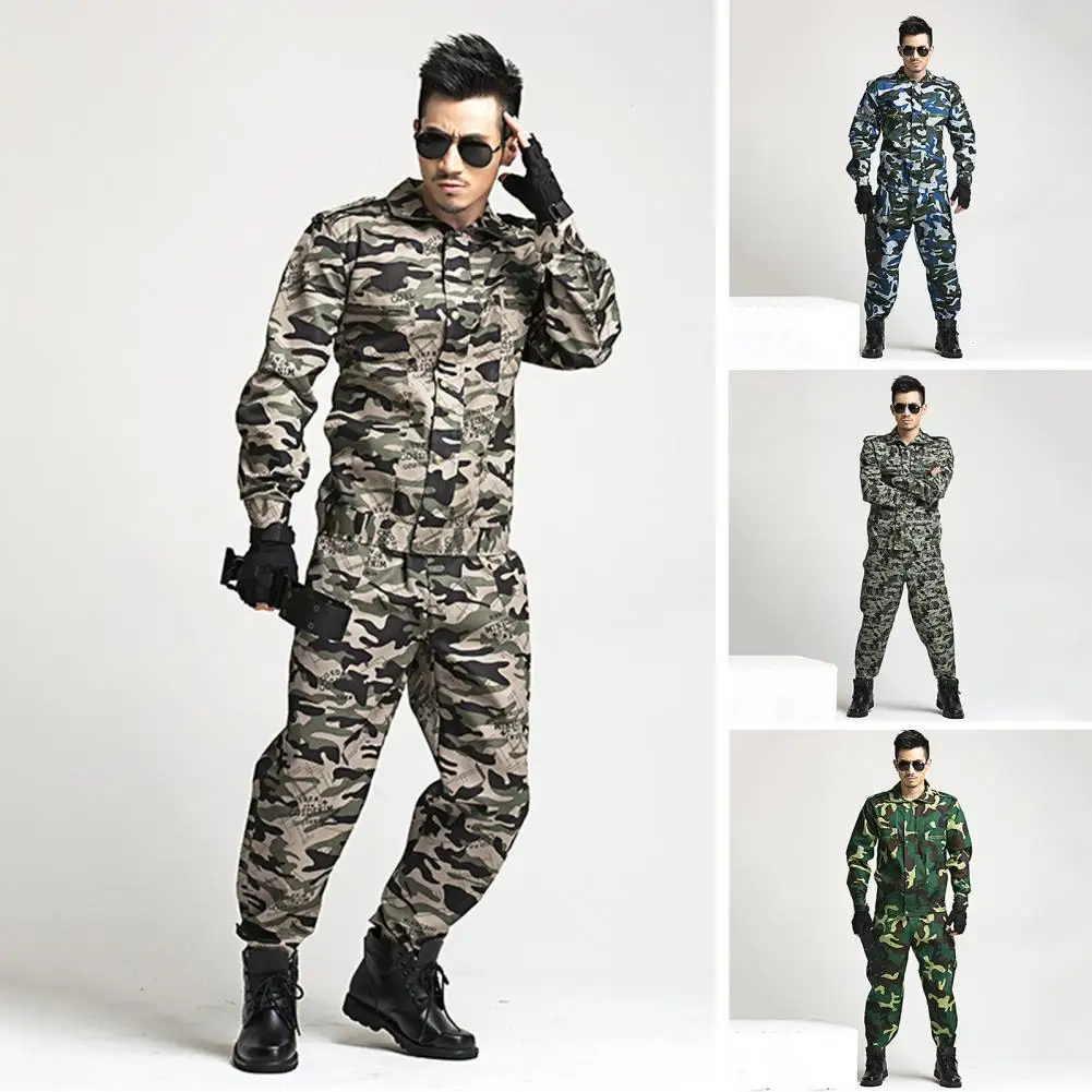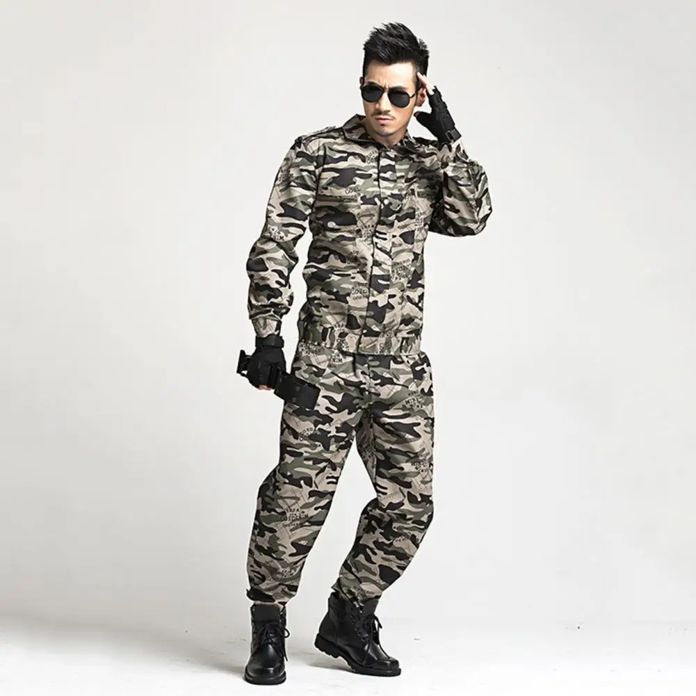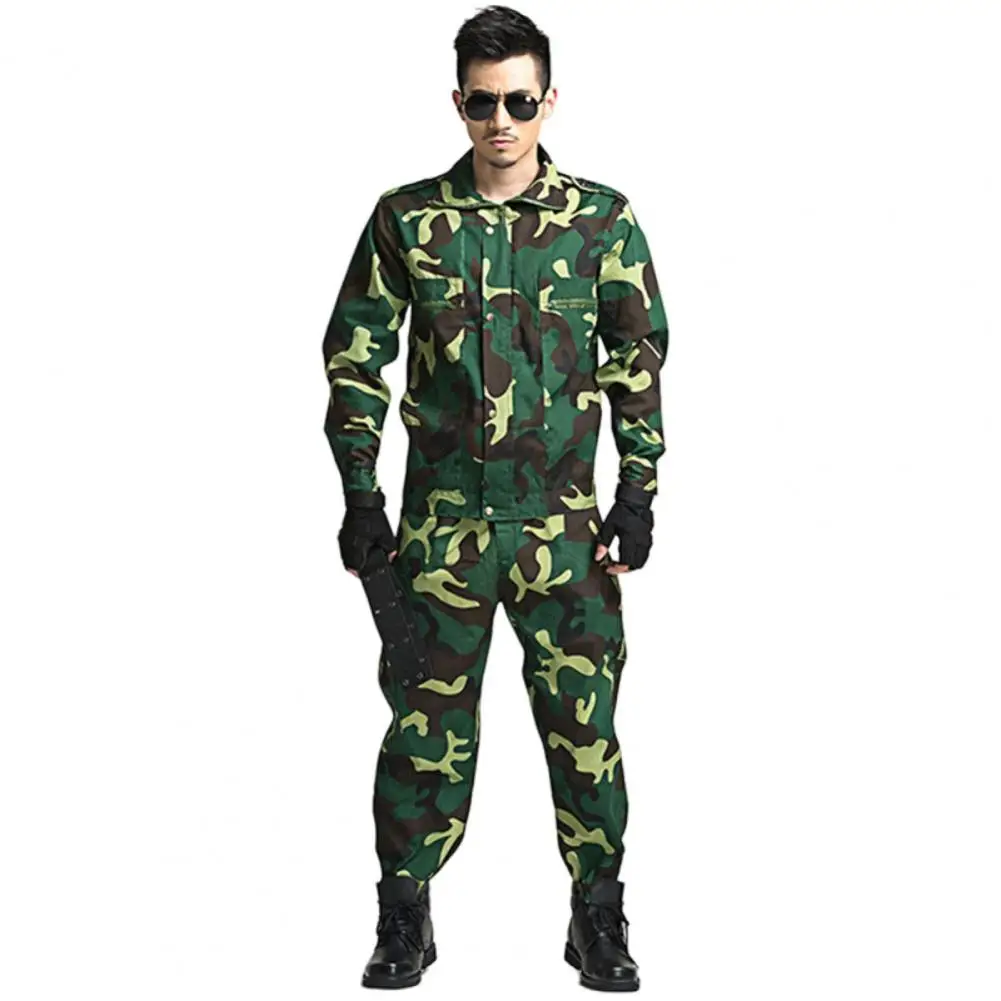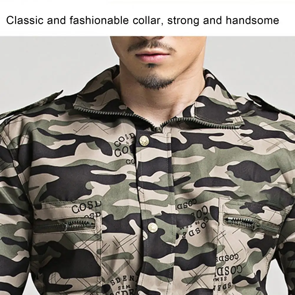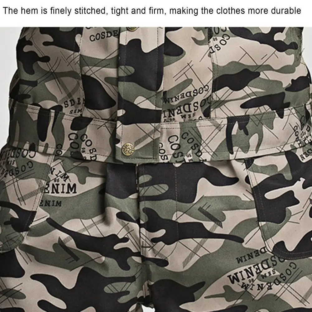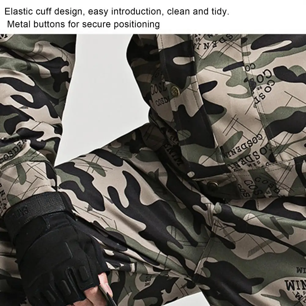 Camouflage Print Men Overalls Suit Multi Pockets Zipper Placket Cargo Jackets Pants Outdoor Male Overalls Suit Training Clothing