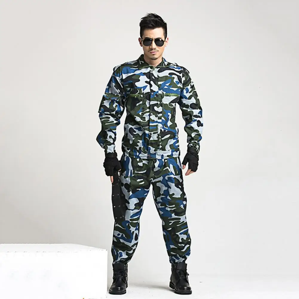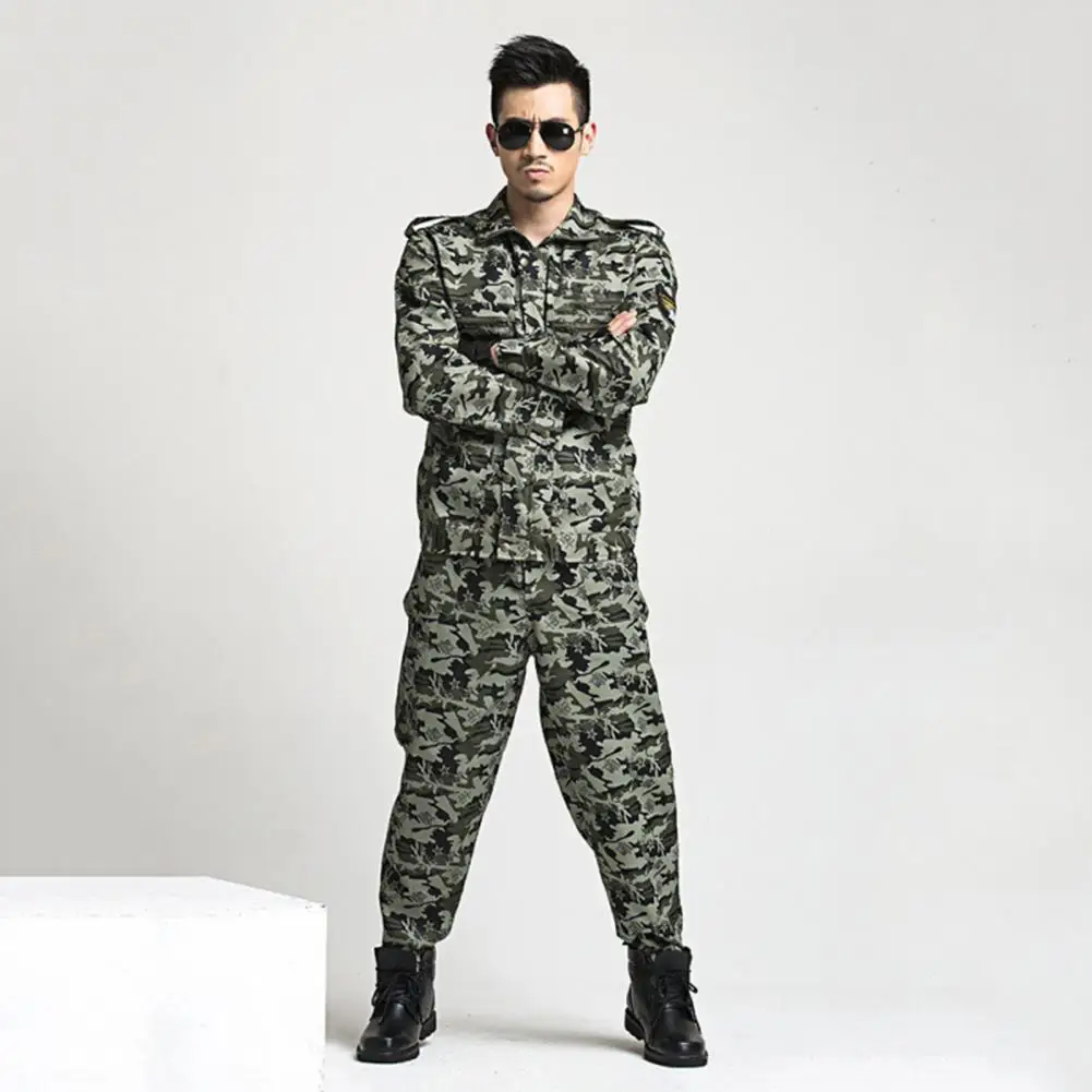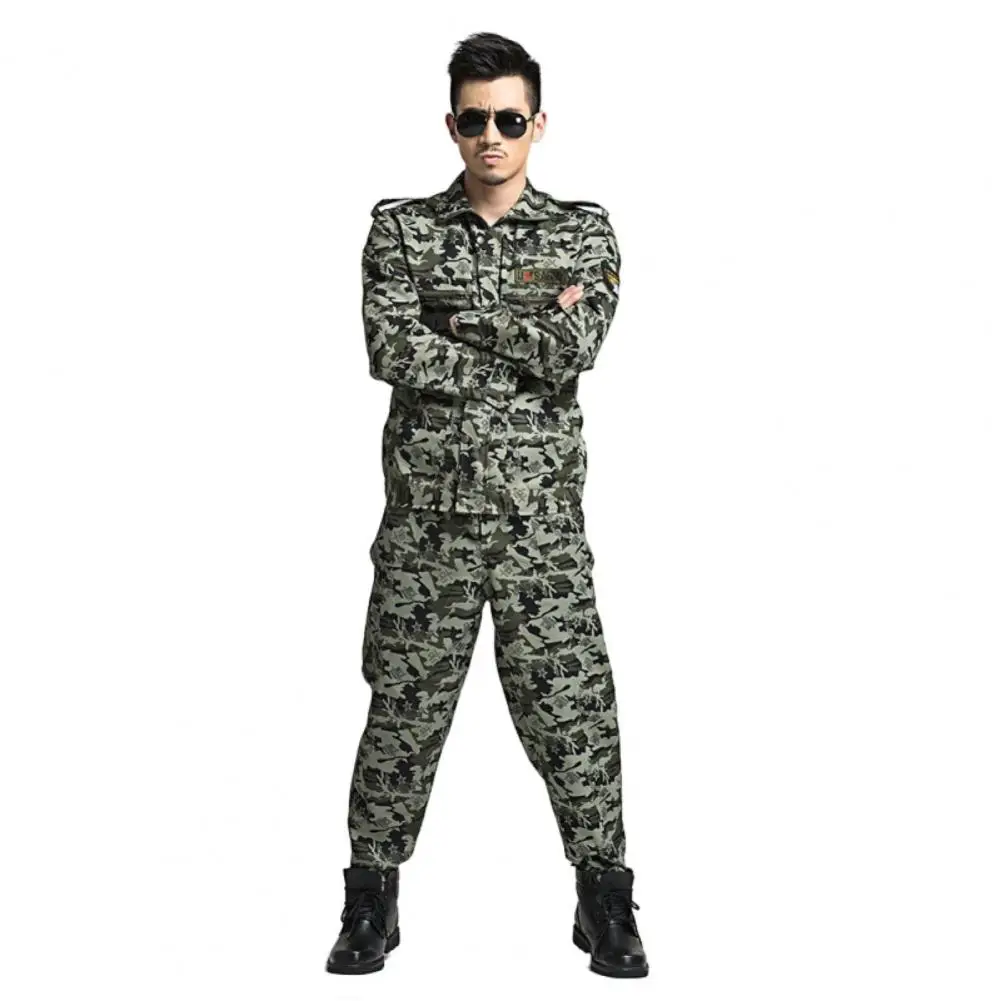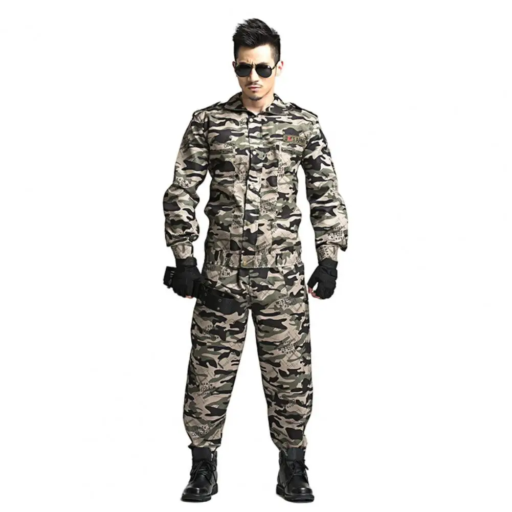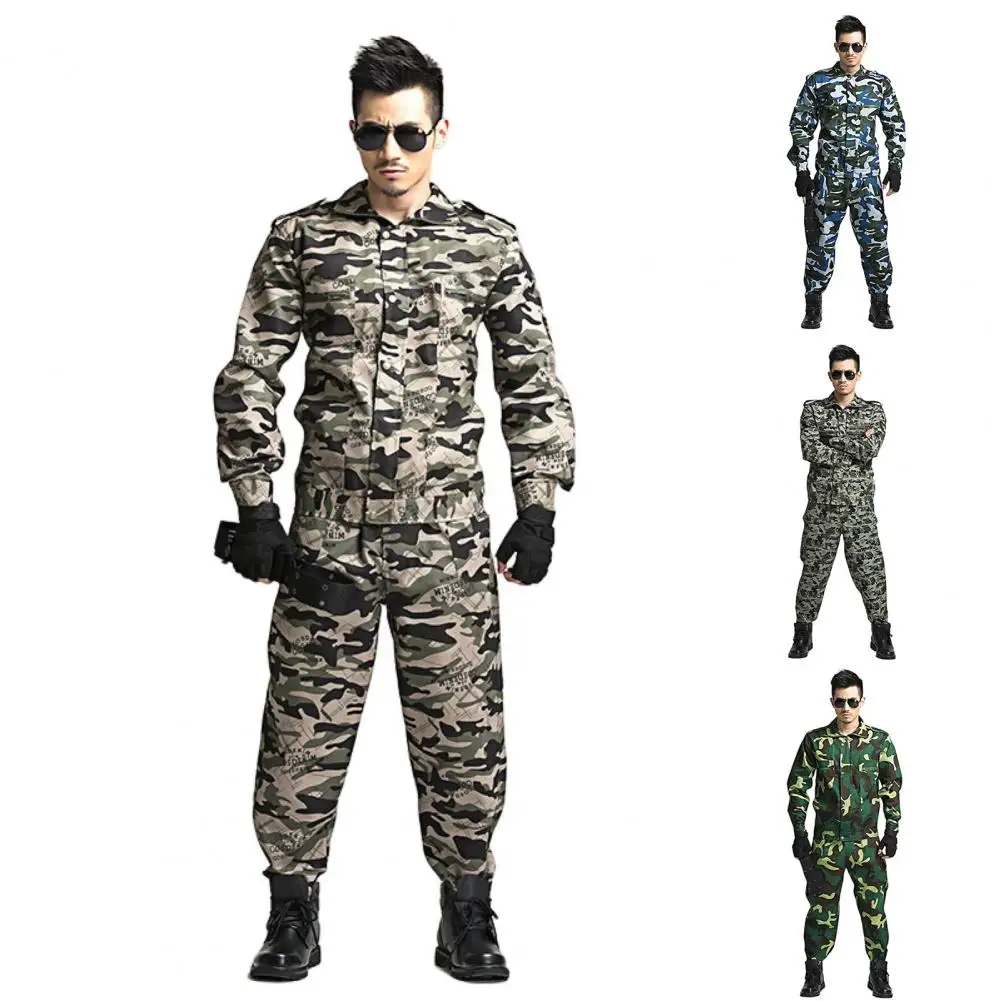 Camouflage Print Men Overalls Suit Multi Pockets Zipper Placket Cargo Jackets Pants Outdoor Male Overalls Suit Training Clothing