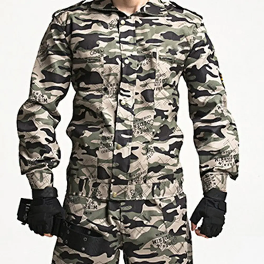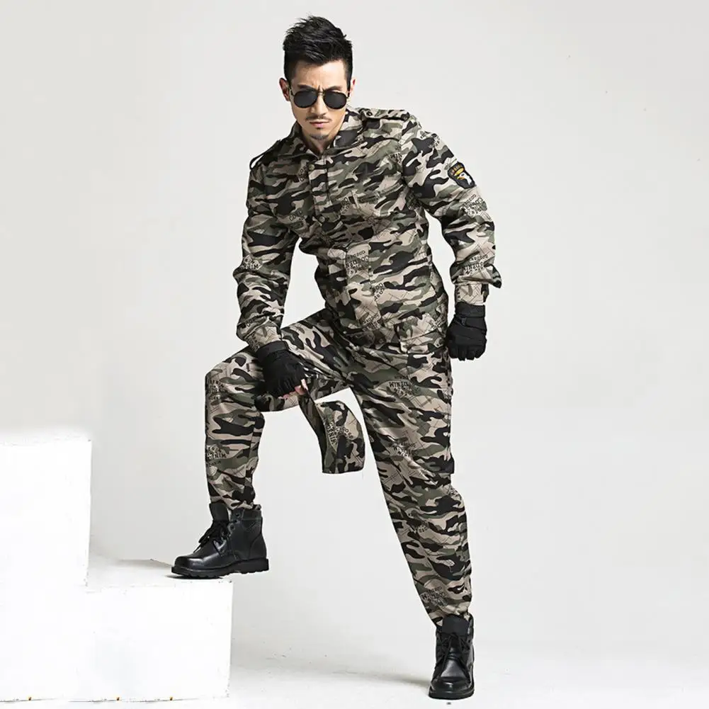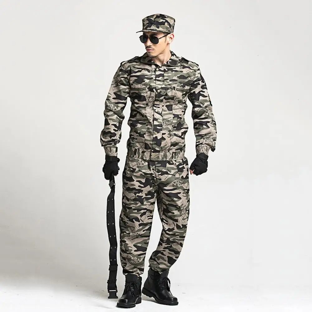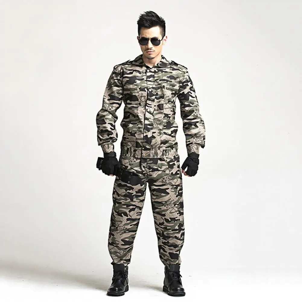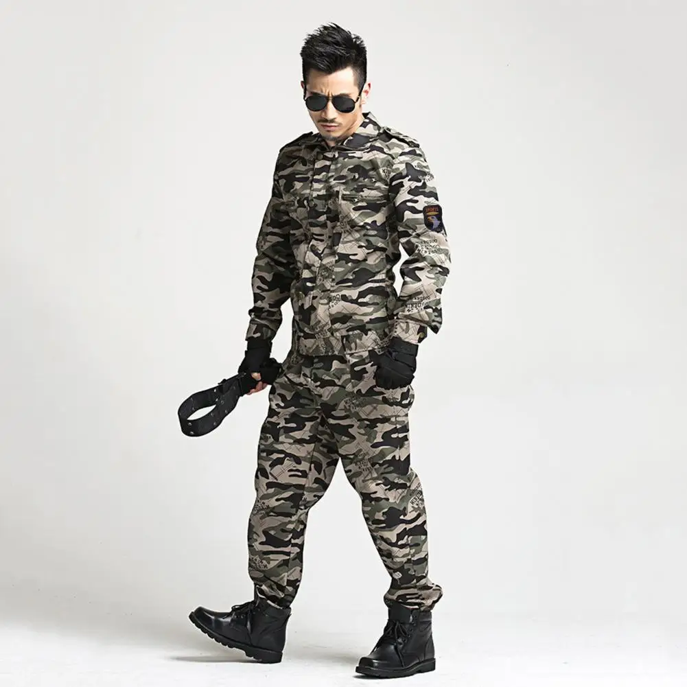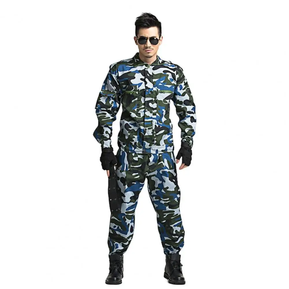 Camouflage Print Men Overalls Suit Multi Pockets Zipper Placket Cargo Jackets Pants Outdoor Male Overalls Suit Training Clothing