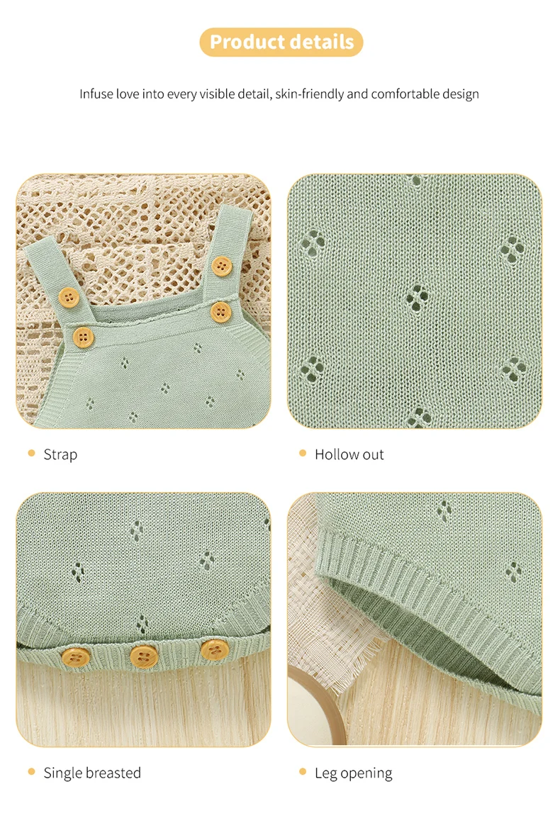 1 recensione per Tute in maglia di cotone per bambini Solido senza maniche Neonato con cinturino Tutina Tute 0-18 m Costumi per bambini bianchi
