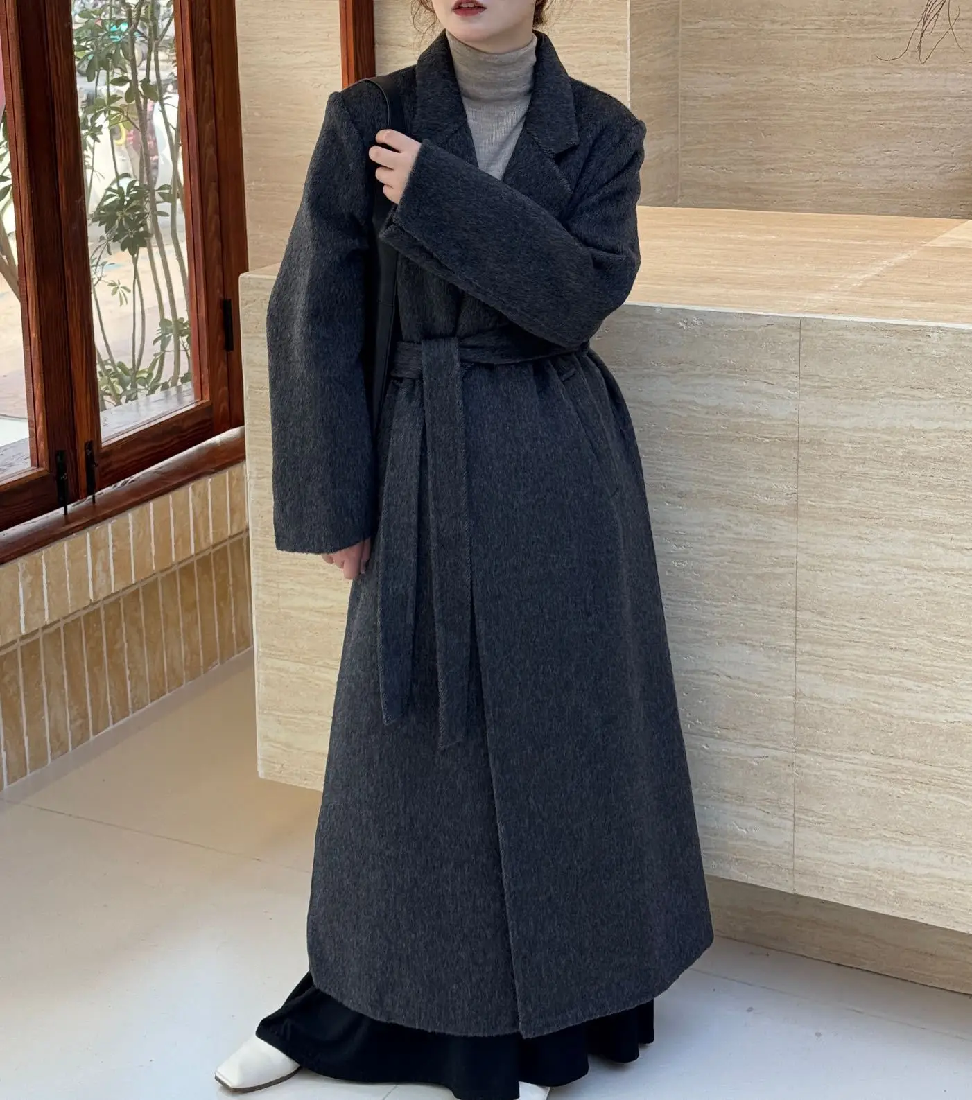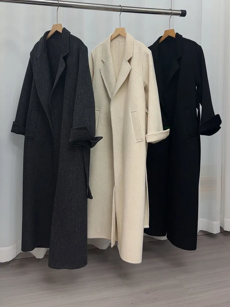 UCXQ Cappotto di lana double face per donna Colletto a maniche lunghe Cardigan con lacci 2025 Autunno Inverno Nuova marea 23Z3901 1UCXQ Cappotto di lana double face per donna Colletto a maniche lunghe Cardigan con lacci 2025 Autunno Inverno Nuova marea 23Z3901