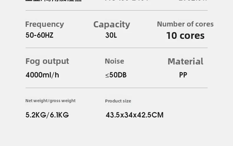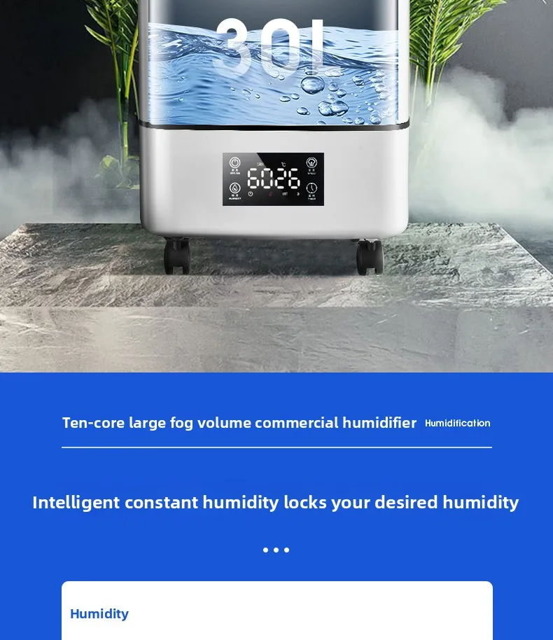 Umidificatore commerciale da 30 litri Umidificatore industriale ad alta capacità di livello industriale per grandi spazi per magazzino/fabbrica