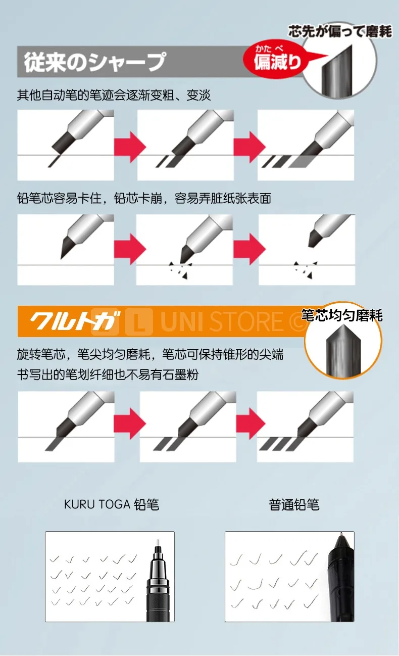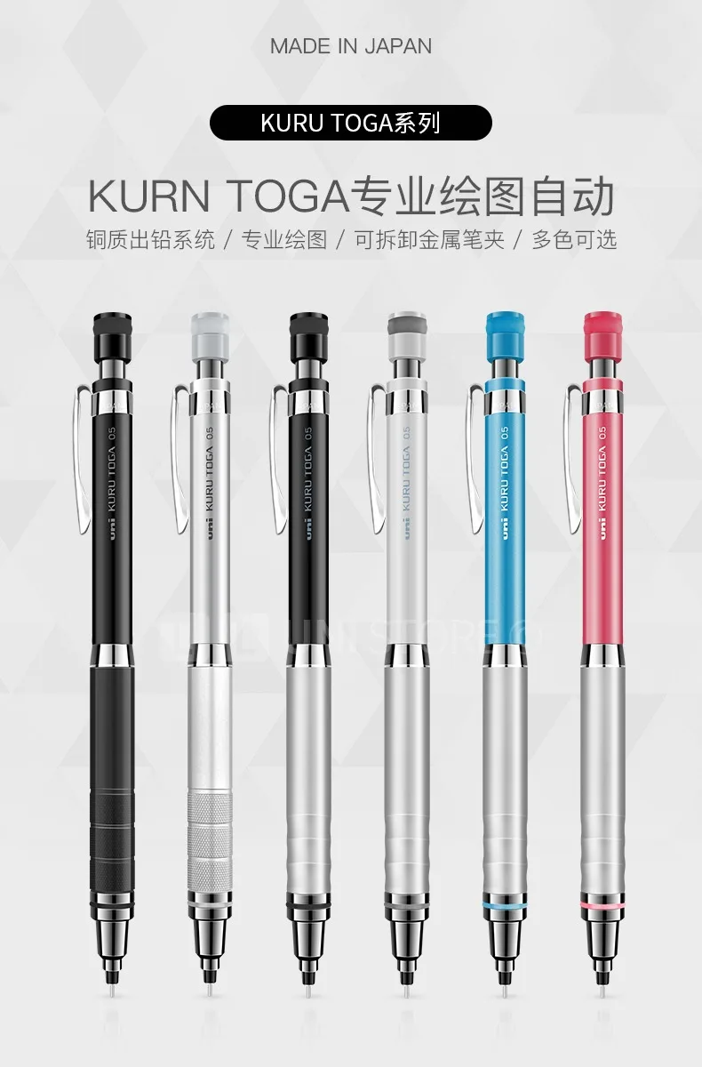 Uni Kuru Toga Matita meccanica Portapenne in metallo M5-1012/1017 Matita rotante automatica, Matita artistica di design per schizzi speciali