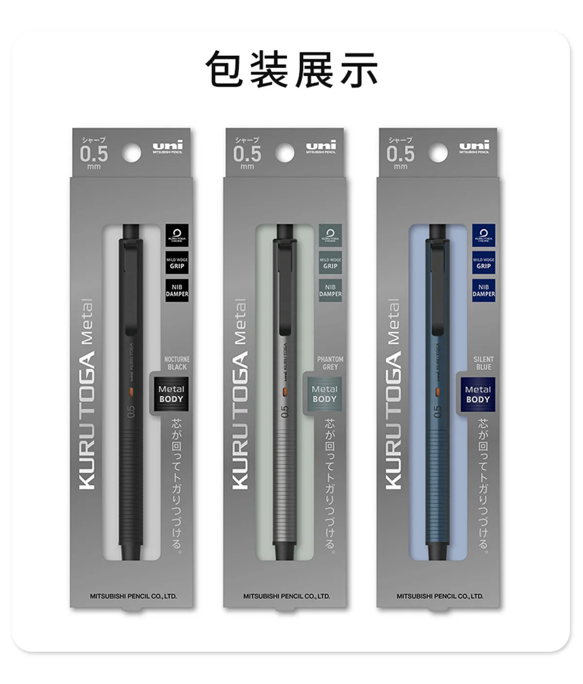 Uni KuruToga Matita meccanica in metallo M5-KH 0.5MM HB/2B Piombo Rotazione automatica Gomma incorporata Forniture di cancelleria per ufficio