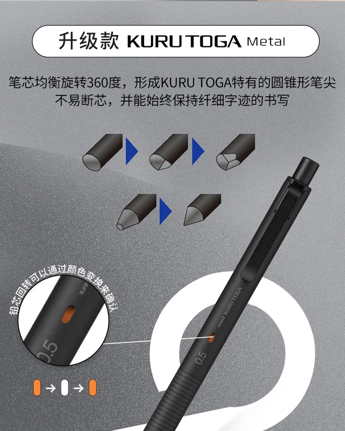 Uni KuruToga Matita meccanica in metallo M5-KH 0,5 mm Piombo più stabile Tecnologia nera Rotazione Lapices di fascia alta per l’ufficio scolastico