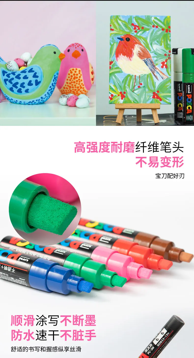 Contiene vernice non tossica a base d’acqua.Segna su metallo, legno, vetro, plastica, gesso, tela e altro ancora.Eccellente per i segnali esposti alle intemperie.Ottimo per contrassegnare temporaneamente le finestre di vetro.Popolare tra i pittori delle tavole da surf.Ampiamente utilizzato dai rivenditori automobilistici per contrassegnare finestre con pubblicità e tramite servizi di collisione per mappare le riparazioni.I segni sono rimovibili da superfici non porose e sigillate come vetro, plastica e lavagne.La vernice acrilica opaca a base d’acqua non è tossica e priva di acidi. Inodore, resistente alla luce, senza xilene, senza piombo e impermeabile quando asciutto. Si legherà permanentemente al legno, ai vasi di argilla, ai cartongesso, al gesso e ad altri materiali porosi.