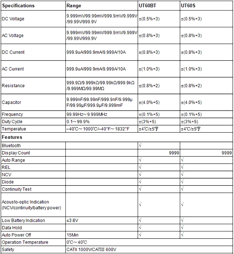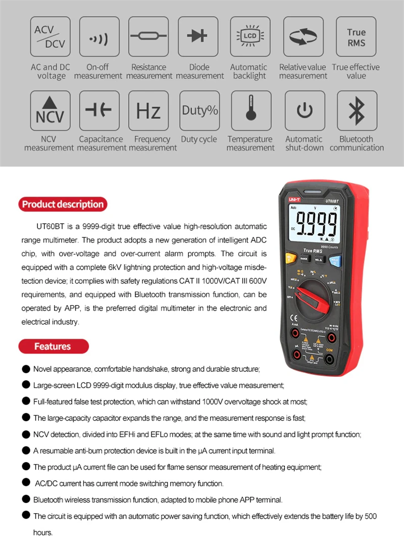 Multimetro UNI-T digitale professionale UT890C UT890D+ UT89X UT89XD UT60S UT60BT UT61B+ UT61D+ UT61E PLUS Tester elettrico