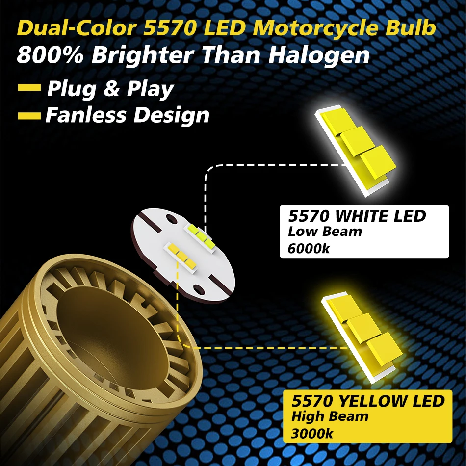 Universale H4 Led Moto LED Faro CSP Lente ATV Scooter Lampada di guida Dual Color Hi Lo Beam Fendinebbia Accessori Moto 12V