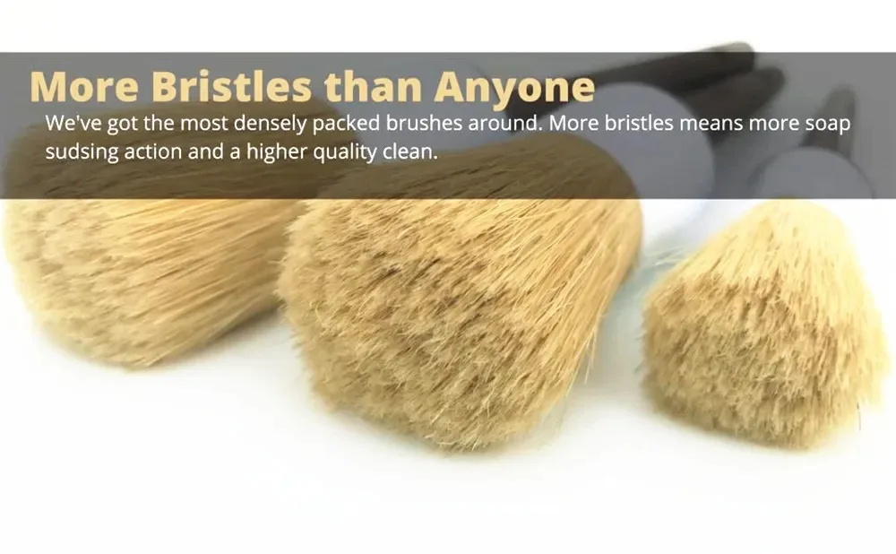– La spazzola per capelli di cinghiale può contenere più acqua di sapone rispetto a una guanto o qualsiasi altra spazzola con setole sintetiche.