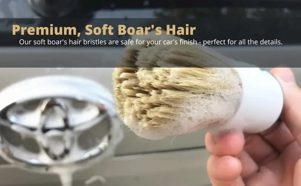 – La spazzola in pelo di cinghiale può contenere più acqua saponata rispetto a un guanto o a qualsiasi altra spazzola a setole sintetiche.