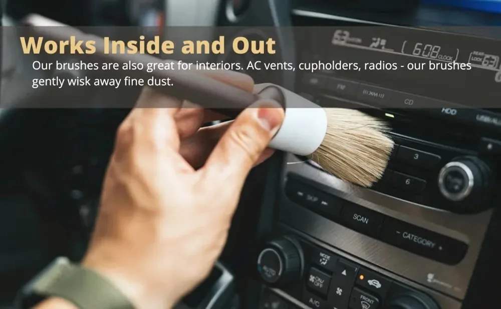 – Questi spazzole per dettagli sono adatte a tutti i tipi di superfici fini come prese d’aria, chiavi di funzionamento, cruscotto, ecc.