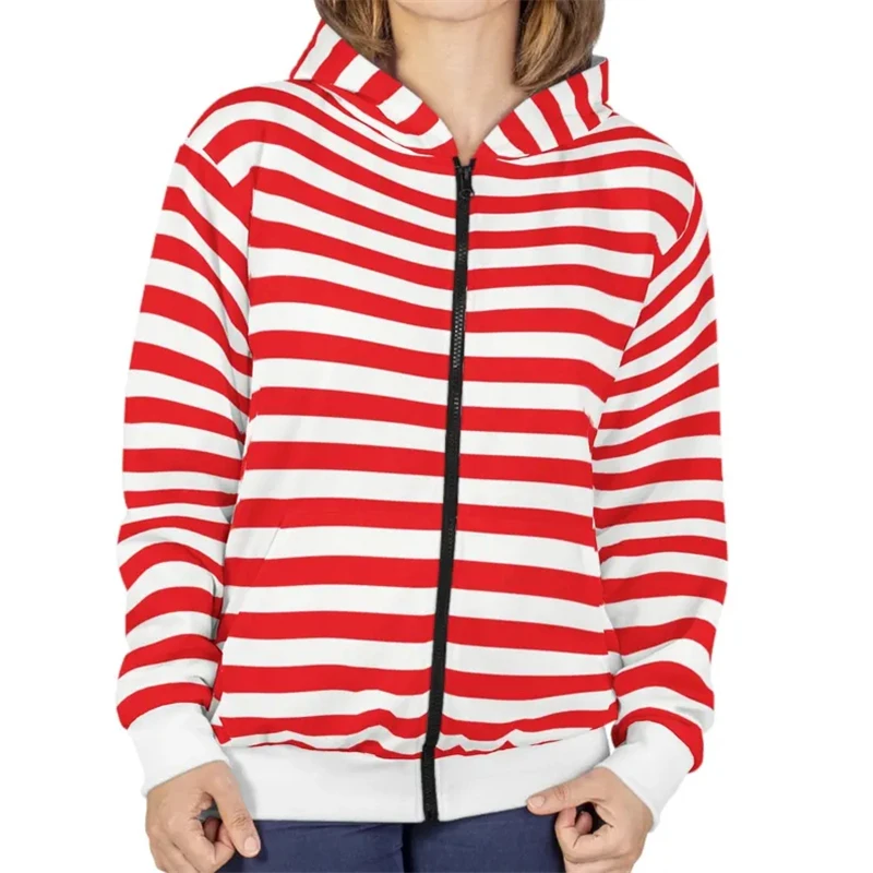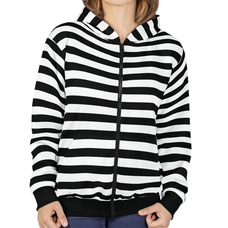 Uomini e donne con lo stesso classico abbigliamento da strada a righe con cappuccio e cerniera, giacca in felpa colorata casual primaverile