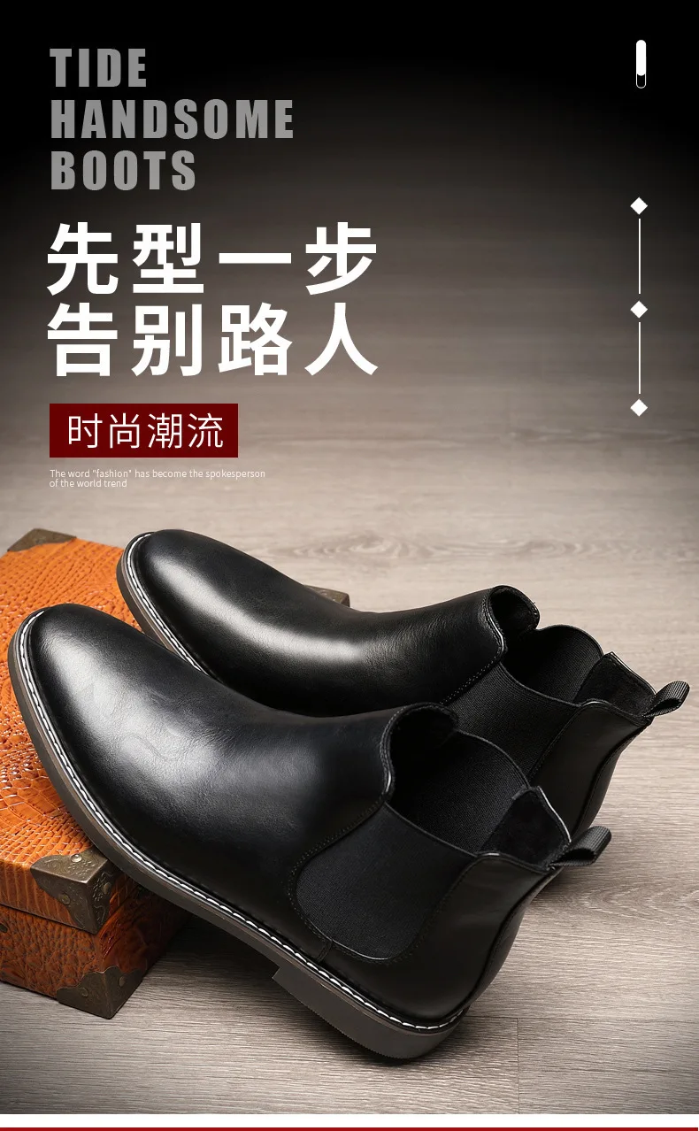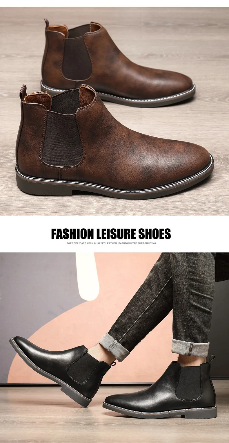 Uomo Autunno Inverno Nuovi stivali di pelle Trendy Versatile Comfort Calzature High Top Stile britannico Stivaletti Casual Scarpe maschili leggere