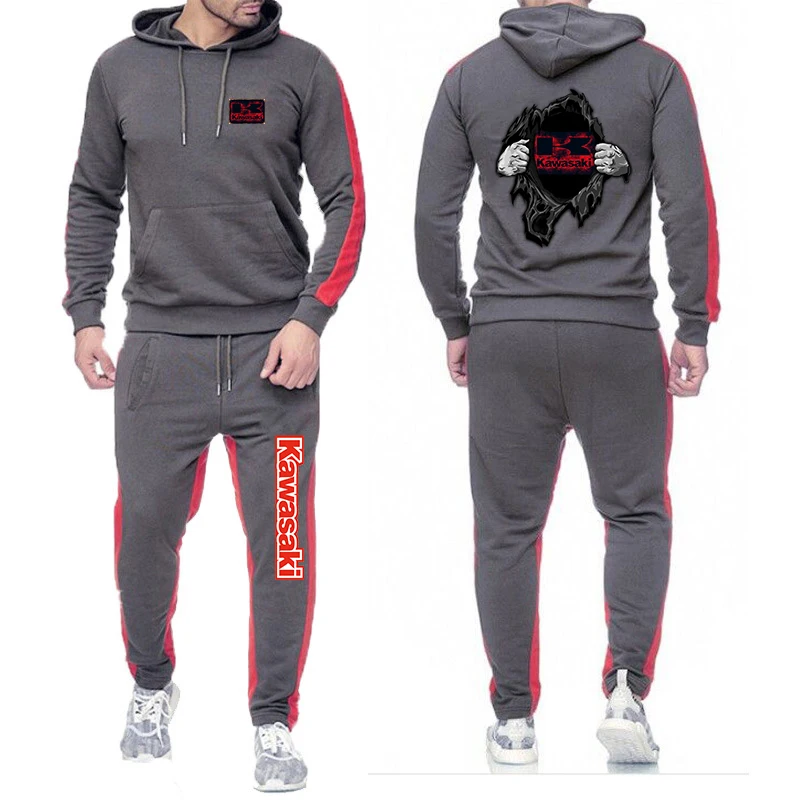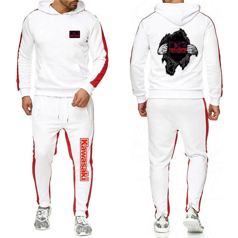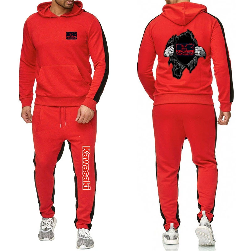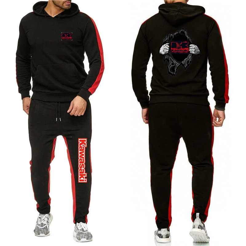 Uomo Donna Felpe con cappuccio Completo Kawasaki Moto Stampa grafica Moda Casual Set a due pezzi Uomo Primavera Autunno Felpe con cappuccio + Pantaloni sportivi
