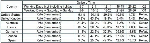 5.SERVICE TRANSIT TIME è fornito dal titolare e esclude fine settimana e vacanze.Il tempo di transito potrebbe variare, particolutamente durante la stagione natalizia.