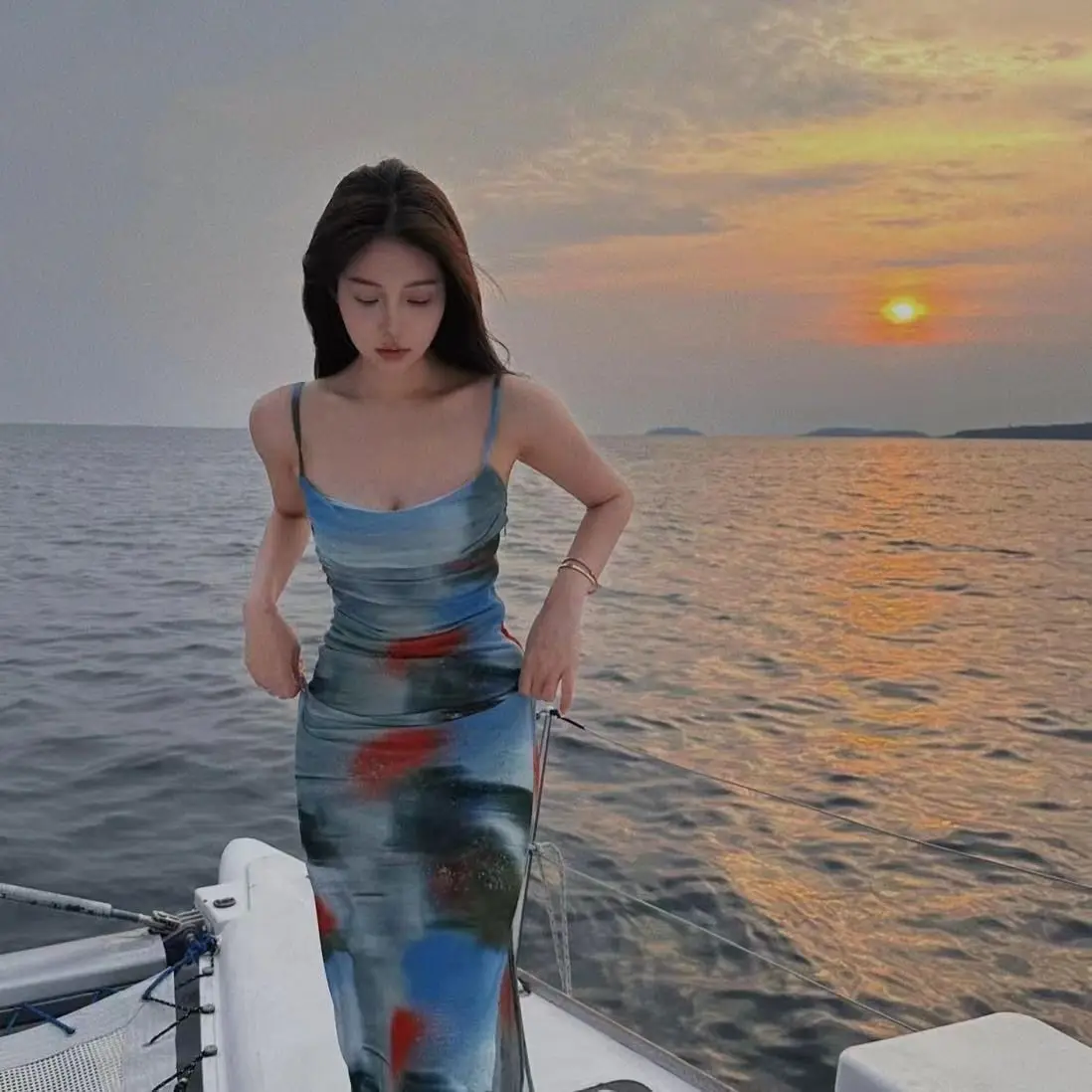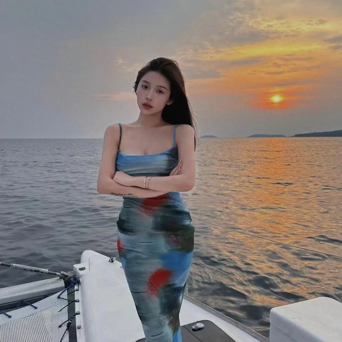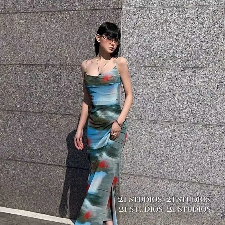 Vacation Feel Retro Sunset Tie Dye Stampa Halter Abito lungo Dimagrante Abito senza spalline Design Sensation Spicy Girl Pure Desire