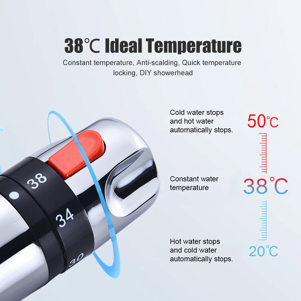 *1.38℃ Nucleo valvola termostatico: offerta addio per regolare ripetutamente la temperatura dell’acqua, con il nucleo di sicurezza che mantiene la temperatura alle 38℃, ovvero puoi utilizzare il controllo della temperatura per regolare tra 20°C e 50°C.