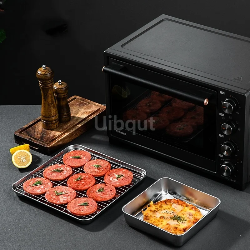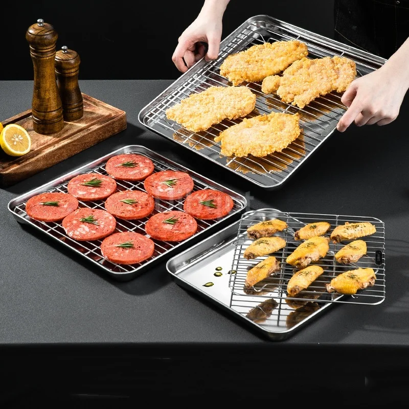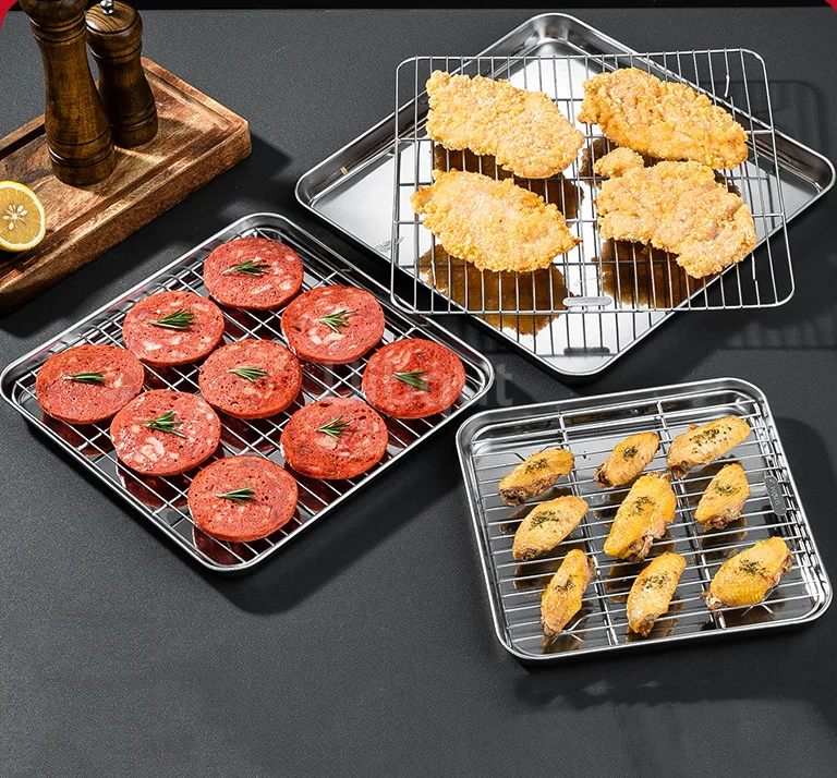 Vassoio quadrato per servizio alimentare in acciaio inossidabile Vassoio antiaderente Bakeware Frutta Biscotto Piatto di pane Organizzatore da cucina Contenitore di stoccaggio Utensili