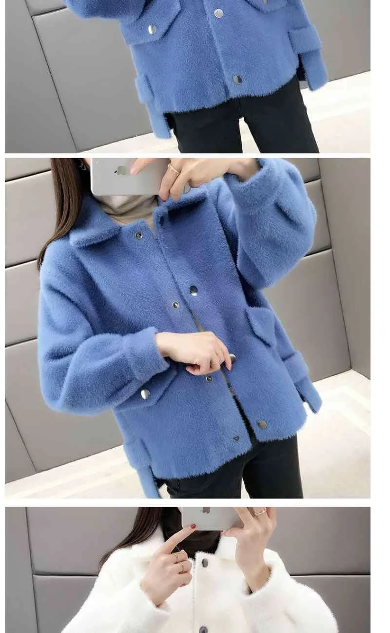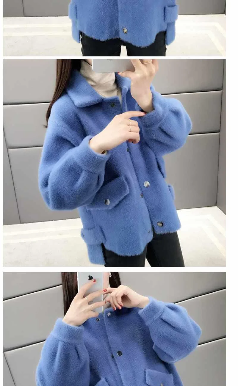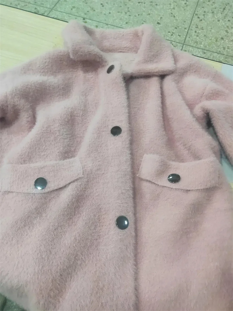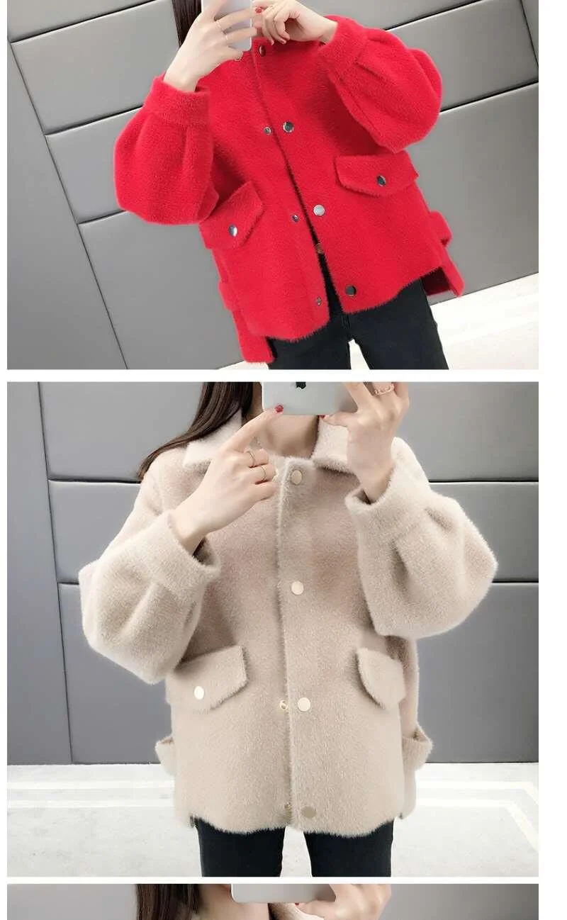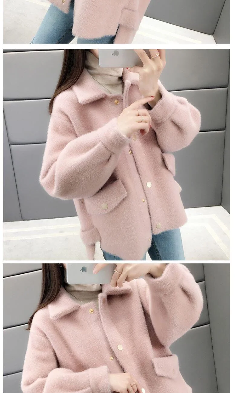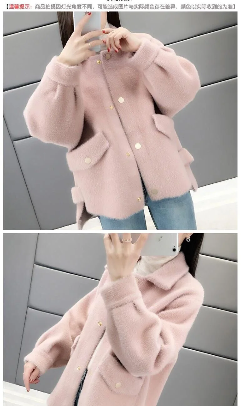 Velluto imitazione visone Nuova giacca da donna 2025Autunno Inverno Cappotto allentato Cardigan in maglia pelosa Capispalla Giacche di lana Cappotto femminile