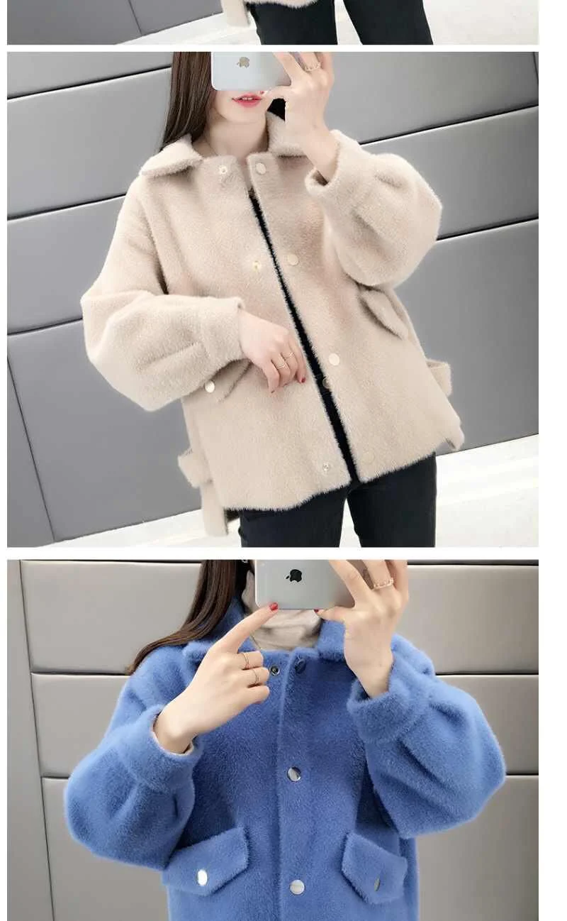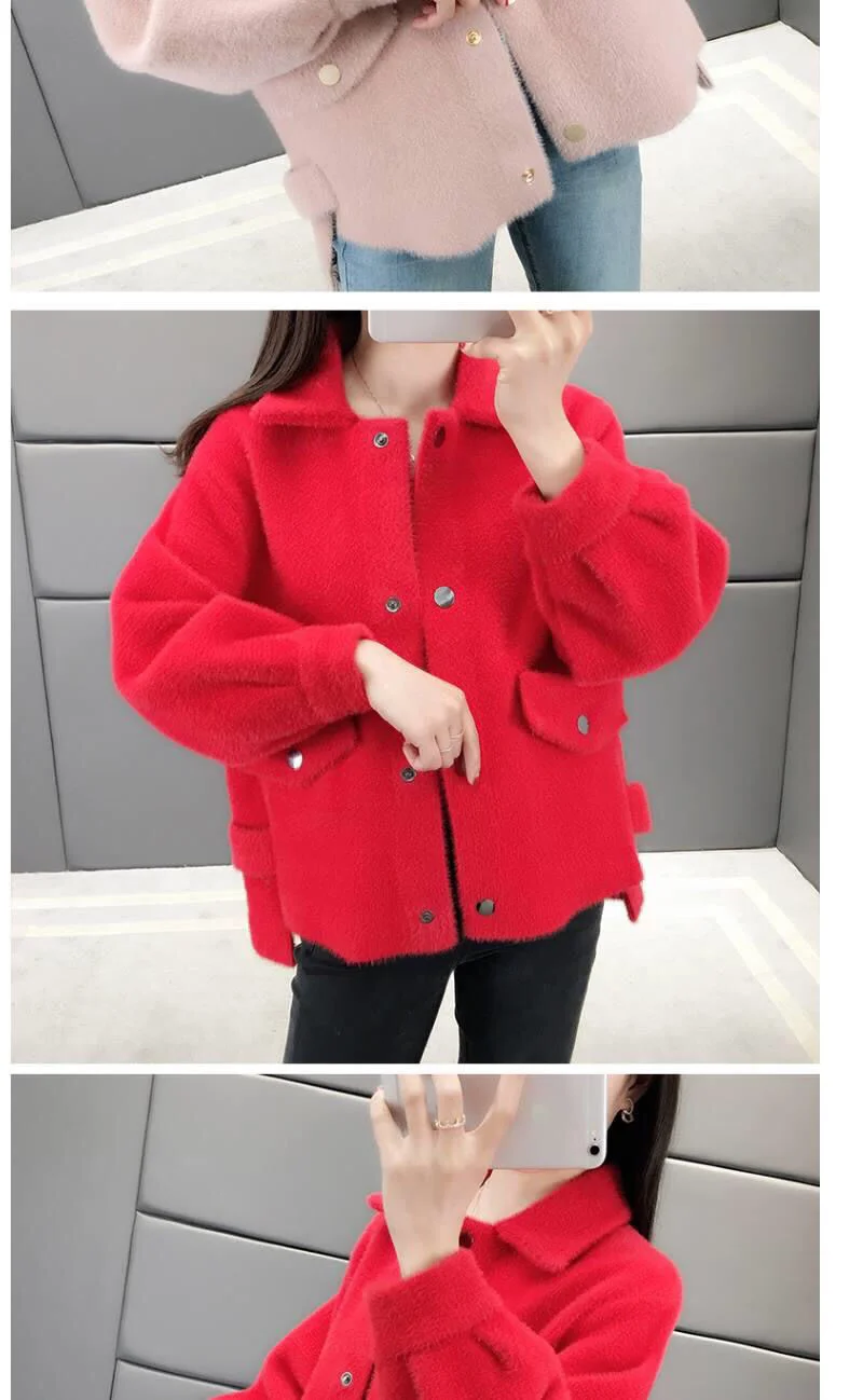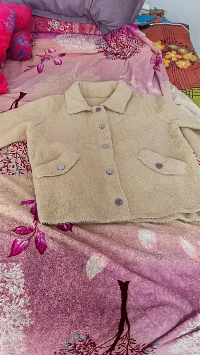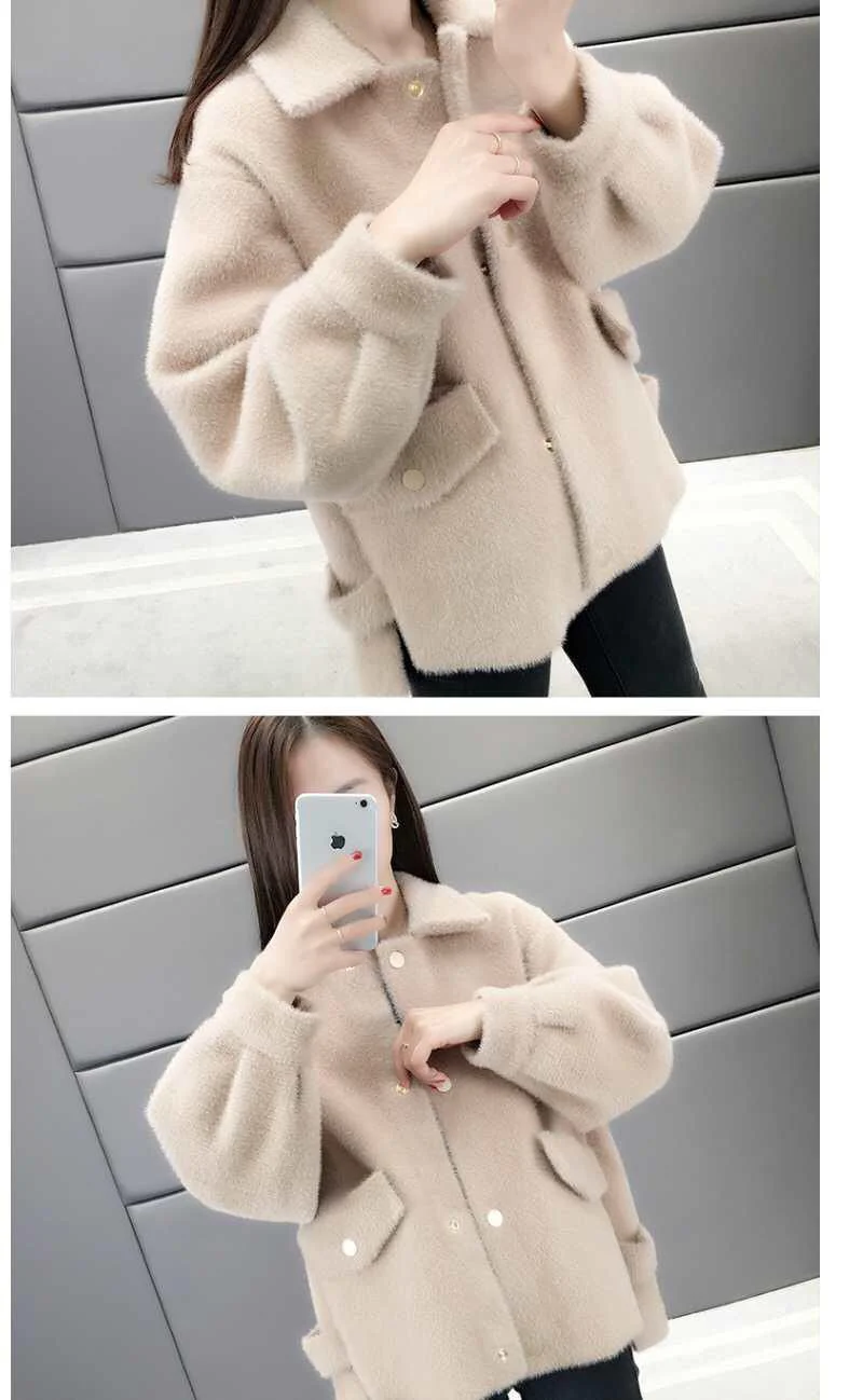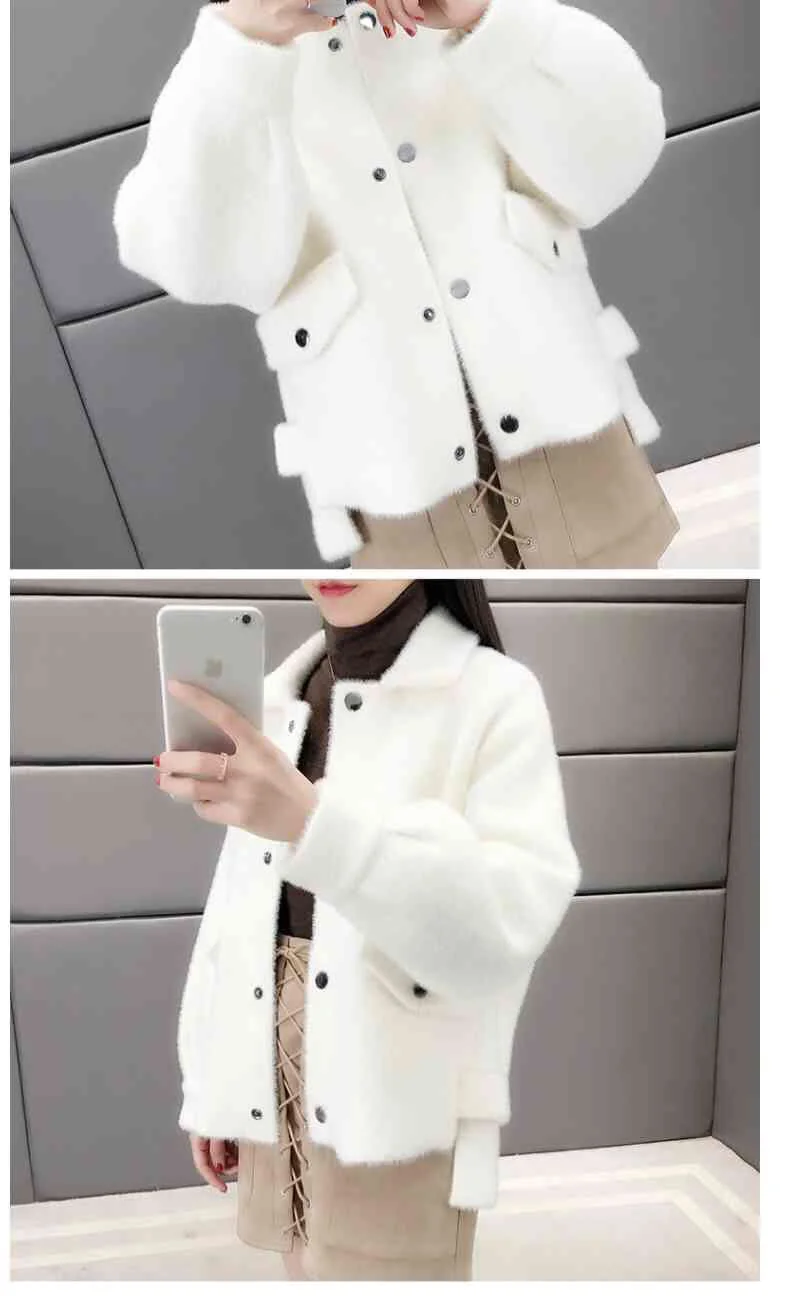 Velluto imitazione visone Nuova giacca da donna 2025Autunno Inverno Cappotto allentato Cardigan in maglia pelosa Capispalla Giacche di lana Cappotto femminile