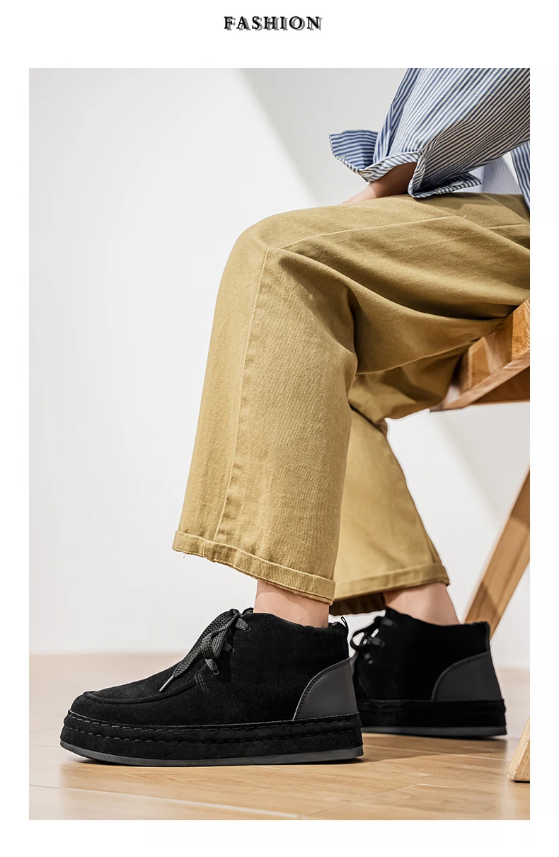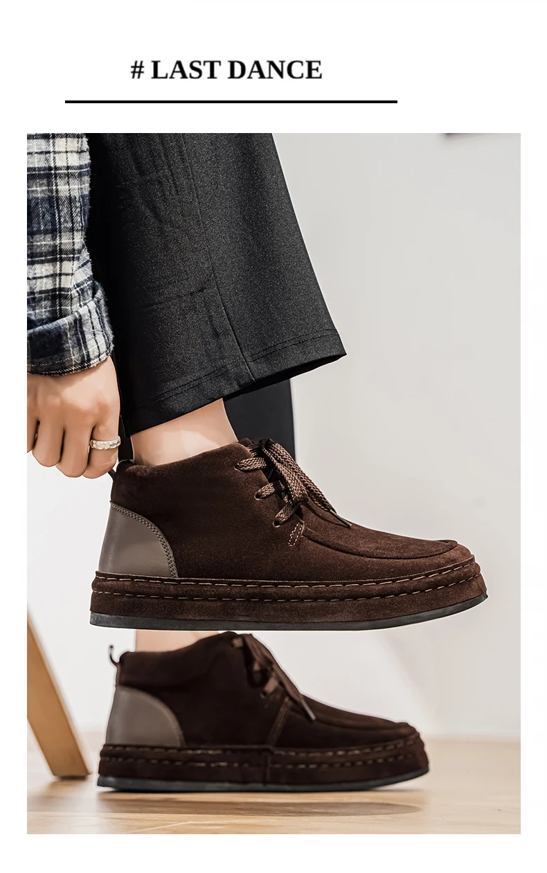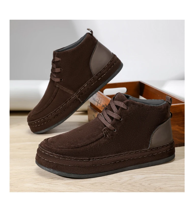 Vendita calda Plus scarpe invernali da uomo in velluto stivaletti marroni per uomo moda scarpe casual alte con lacci uomo pelliccia calda stivale in pelle scamosciata 1Vendita calda Plus scarpe invernali da uomo in velluto stivaletti marroni per uomo moda scarpe casual alte con lacci uomo pelliccia calda stivale in pelle scamosciata