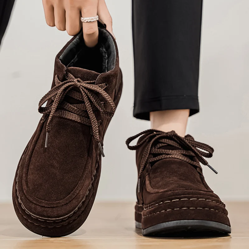Vendita calda Plus scarpe invernali da uomo in velluto stivaletti marroni per uomo moda scarpe casual alte con lacci uomo pelliccia calda stivale in pelle scamosciata 1Vendita calda Plus scarpe invernali da uomo in velluto stivaletti marroni per uomo moda scarpe casual alte con lacci uomo pelliccia calda stivale in pelle scamosciata
