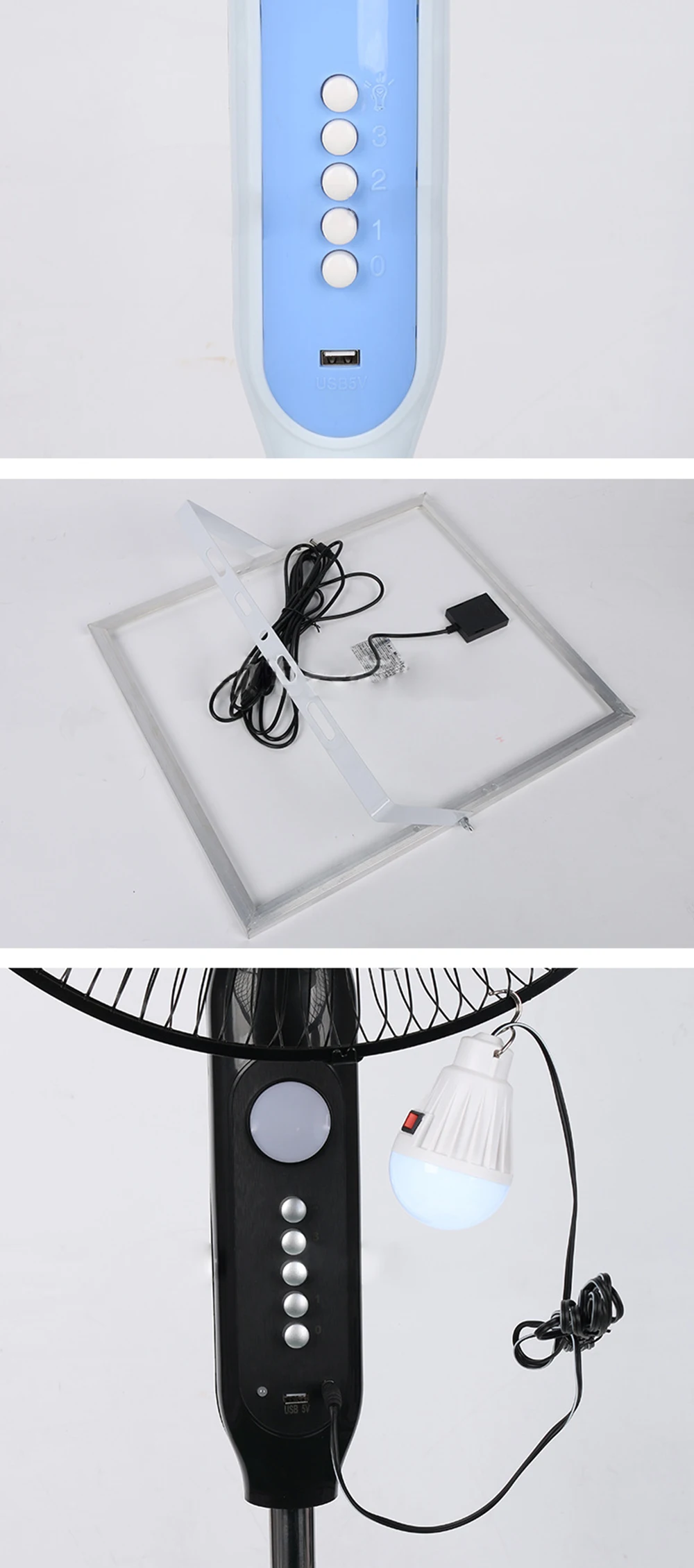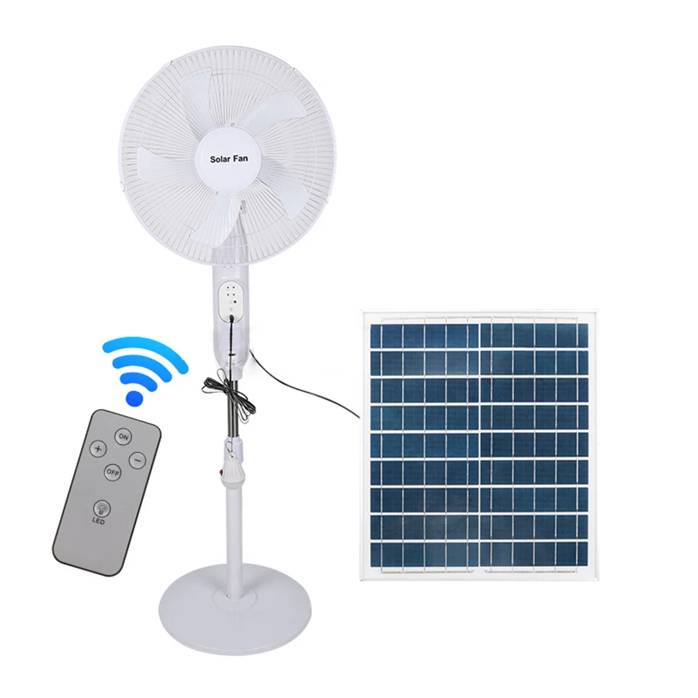 Ventilatore da pavimento solare Ventilatore ricaricabile Pannello da 25 W Carie 5 ore Temporizzazione 12 ore Telecomando e display a LED Ventola di emergenza per interruzione di corrente