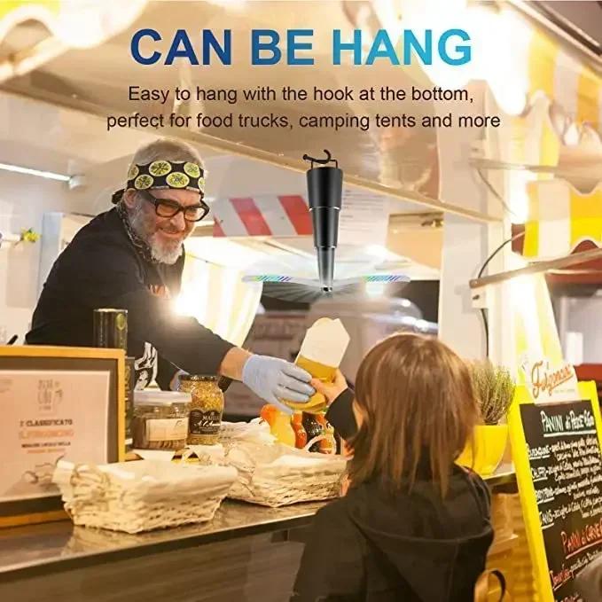 【DIO DESIGN DOPPIO UTILIZZATO WIDELY】 – Il ventilatore da tavolo ha anche un gancio in basso per appendere l’apparecchio capovolto che è comodo.Il ventilatore a mosca ecologico è perfetto per ristoranti interni, feste in patio all’aperto, campeggi, barbecue e picnic.Puoi finalmente godersi una conversazione sopra un pasto all’aperto in tutto il tempo.