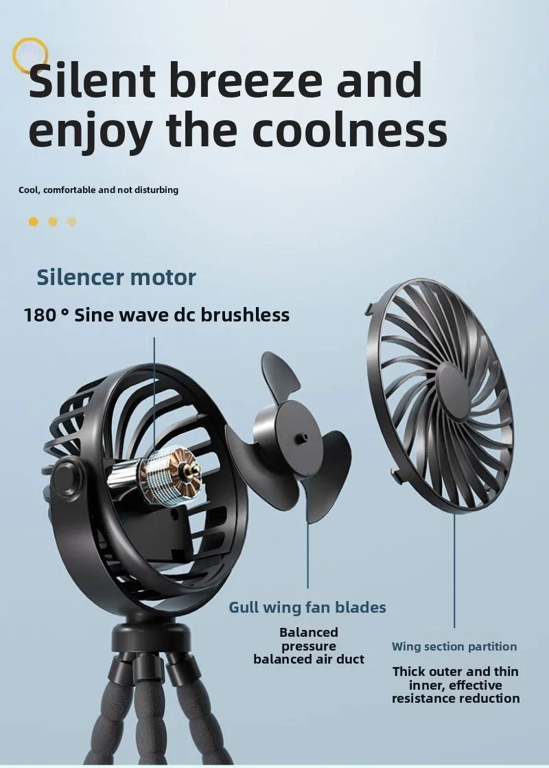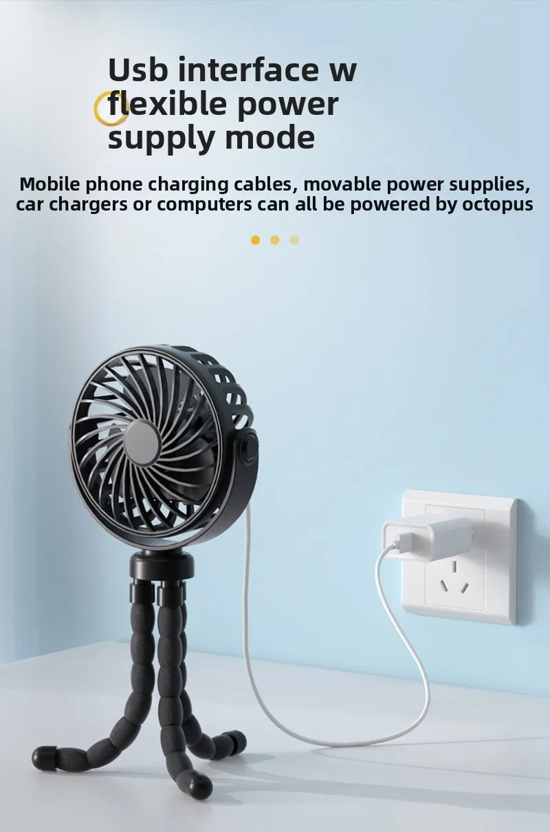 2. USB ricaricabile: con la sua capacità di ricarica USB, questo mini ventola Octopus garantisce una facilità di utilizzo ed elimina la affidabilità sulle prese di corrente, che fornisce il raffreddamento in movimento ovunque sei.