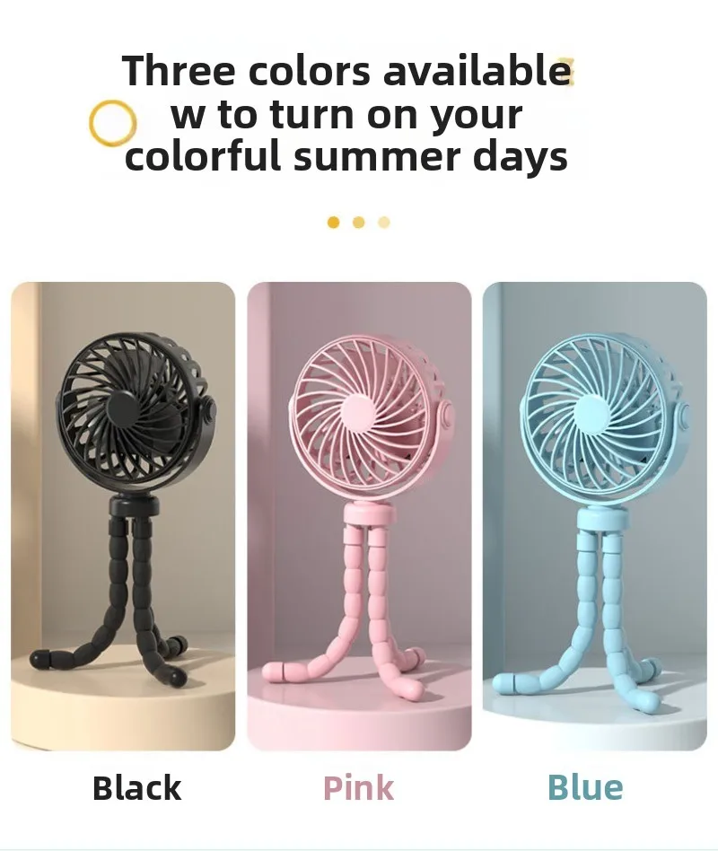 Ventilatore per passeggino con treppiede flessibile Ventilatore per seggiolino auto per bambini Regolazione a 3 velocità 500mAh Piccolo ventilatore personale per studenti per passeggino Caratteristiche: