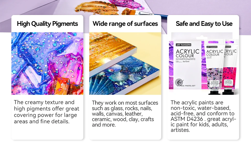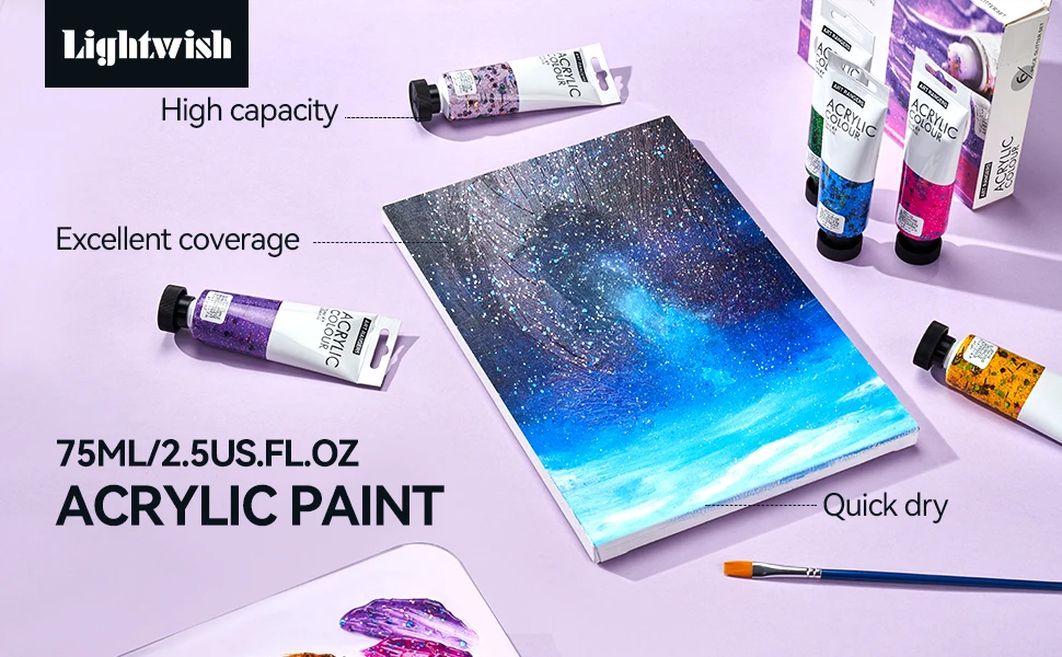 Sicuro e non tossico: realizzato in materiale di vernice premium, conforme ai standard ASTM D-4236, il set di colori acrilici Lightwish è in ricco pigmento, cremoso, non tossico e adatto per adulti, artisti, adolescenti e bambini.