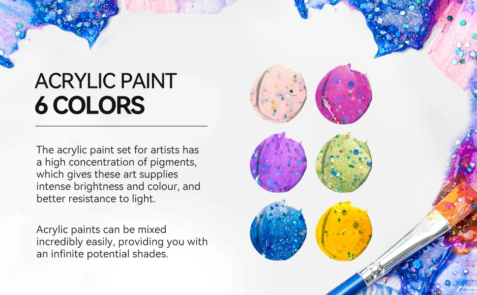 Colori vivaci: il nostro kit di pittura acrilica premium presenta un colore liscio e altamente pigmentato per produrre una vasta gamma di tonalità audace e belle, sono durevoli, resistenti allo sbiadimento e non scoperte, per realizzare il tuo opere d’arte in piedi.