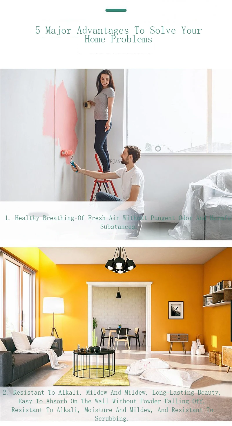 2.Resistente agli alcali, alla muffa e alla muffa, bellezza di lunga durata, facile da assorbire al muro senza polvere che cade, resistente agli alcali, l’umidità e la muffa, e resistente al strofinare.