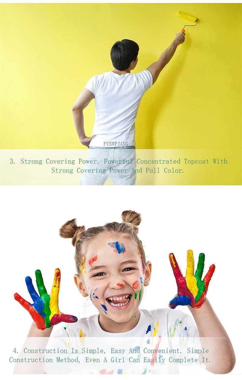 3.Forte potere coprente.Potente finitura concentrata con forte potere coprente e colore pieno.