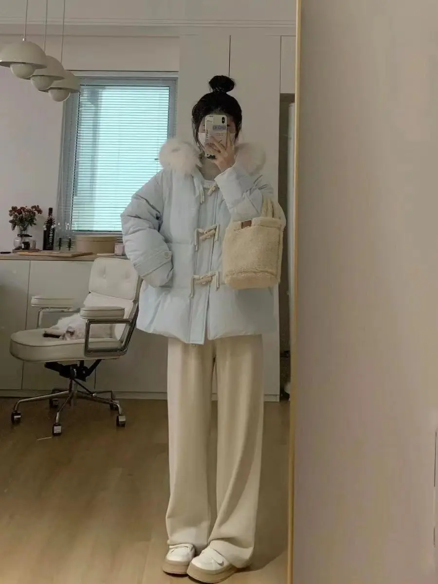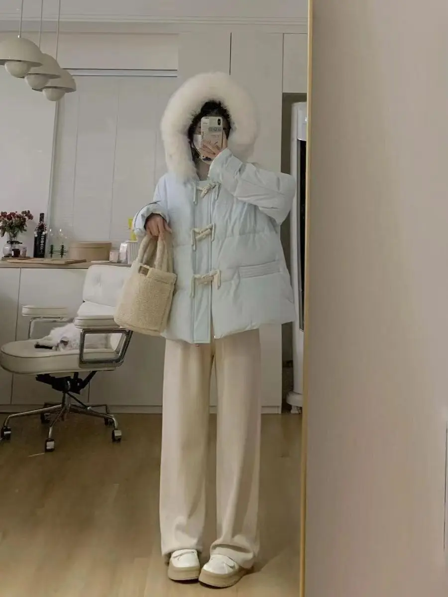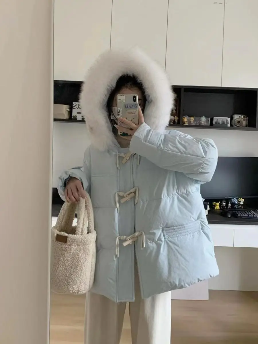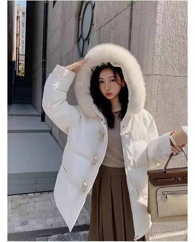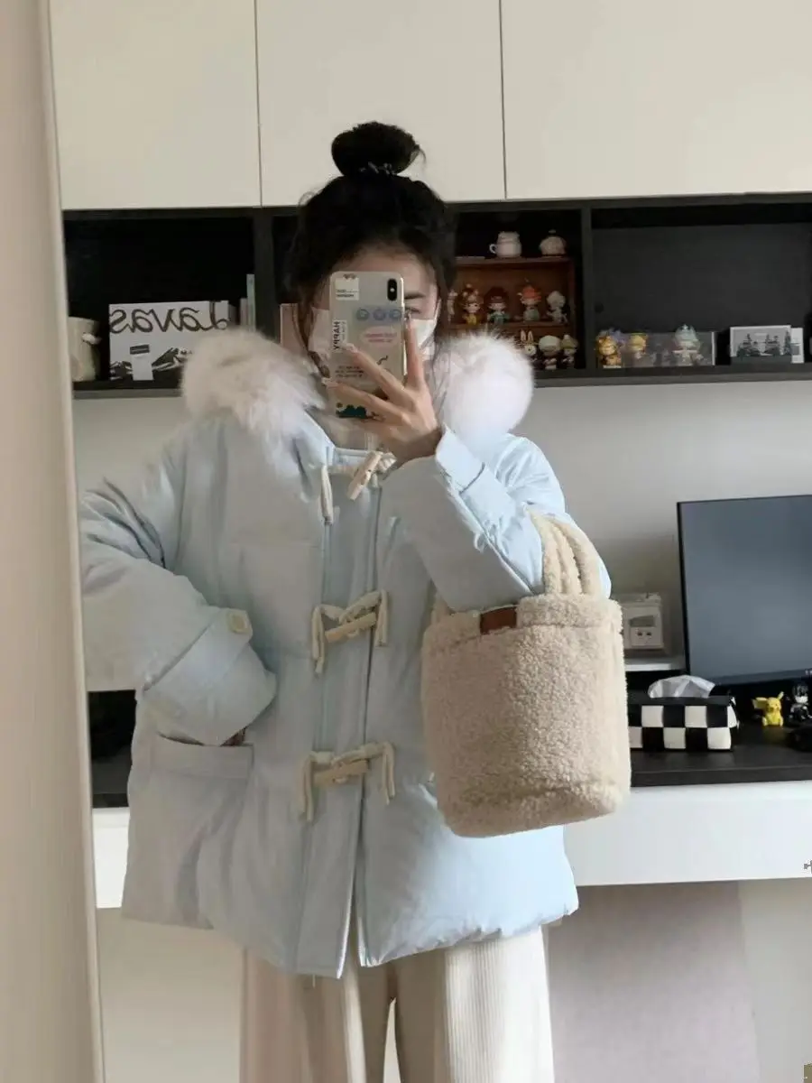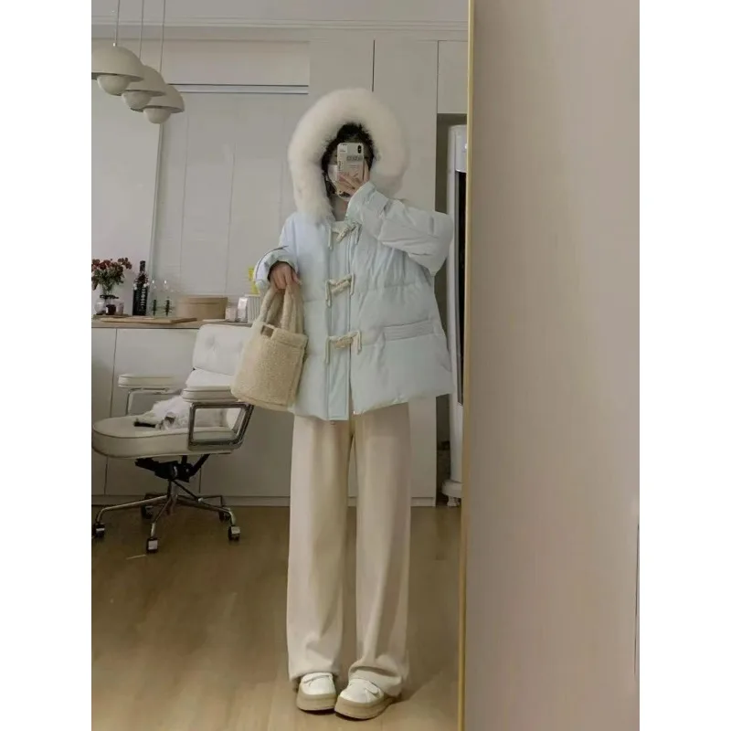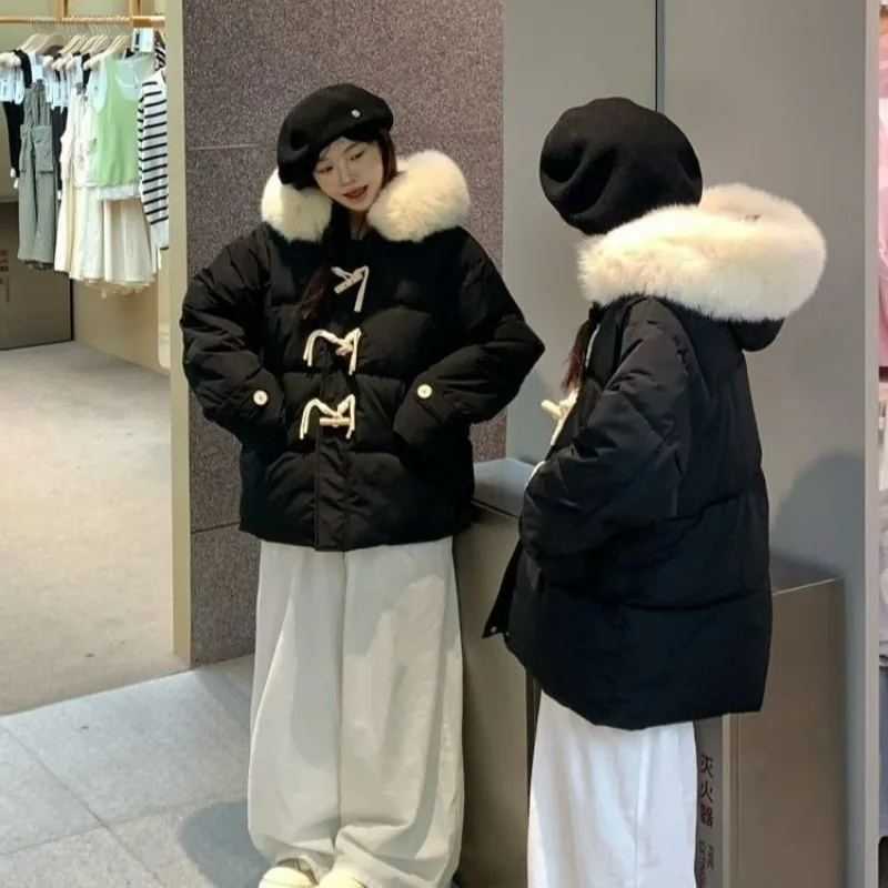 cotone imbottito a mano versione leggera, fibbia in corno viola vestiti di cotone giacca invernale da donna con colletto in pelliccia grande allentato giacca di pane ispessita