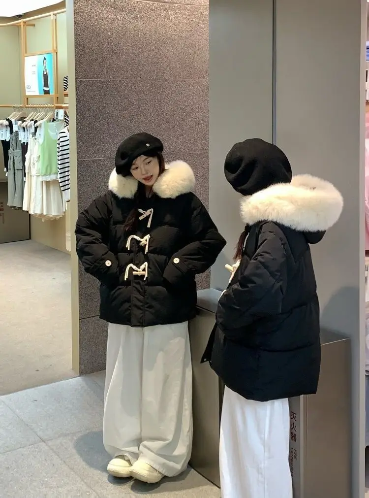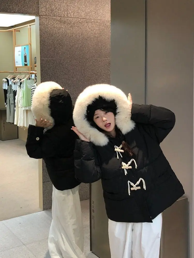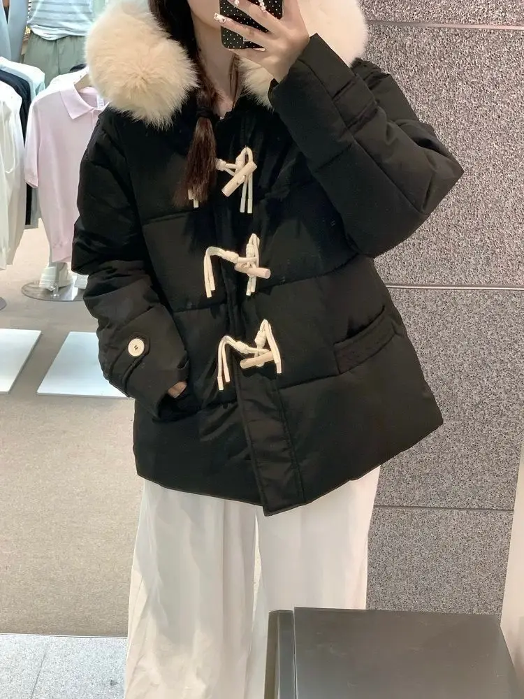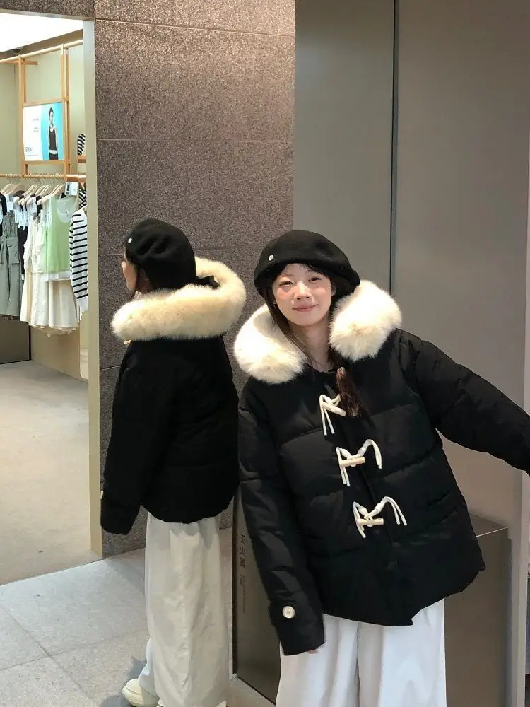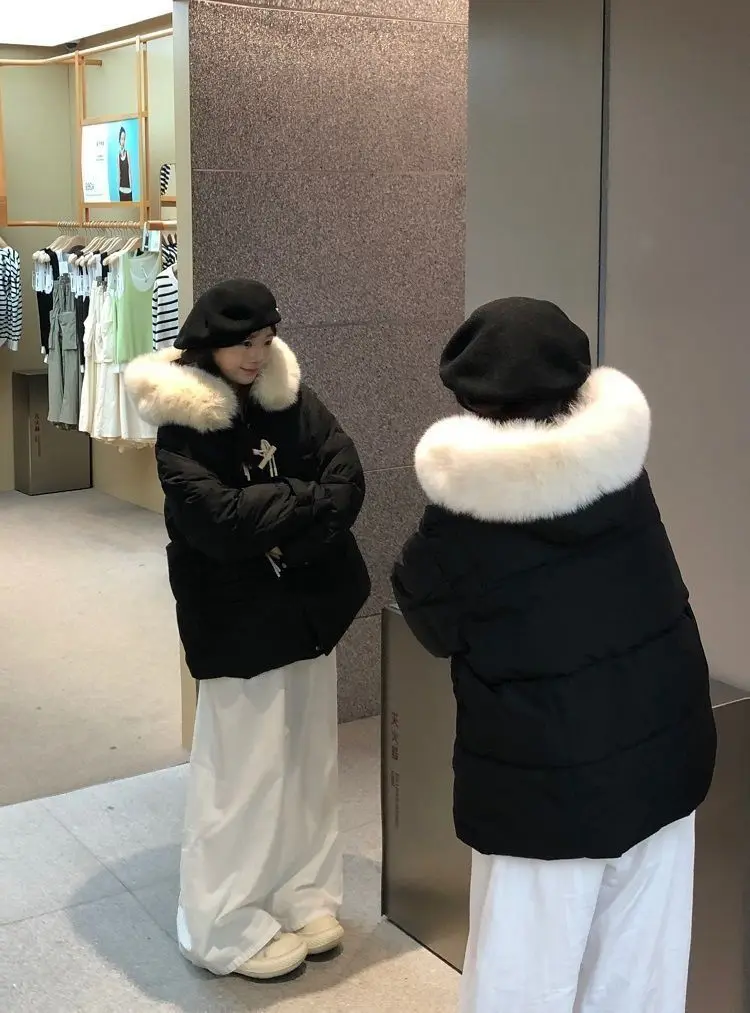Versione leggera Cotone imbottito a mano Fibbia in corno viola Vestiti di cotone Colletto di pelliccia grande allentato invernale da donna Vestiti di pane addensati 1Versione leggera Cotone imbottito a mano Fibbia in corno viola Vestiti di cotone Colletto di pelliccia grande allentato invernale da donna Vestiti di pane addensati