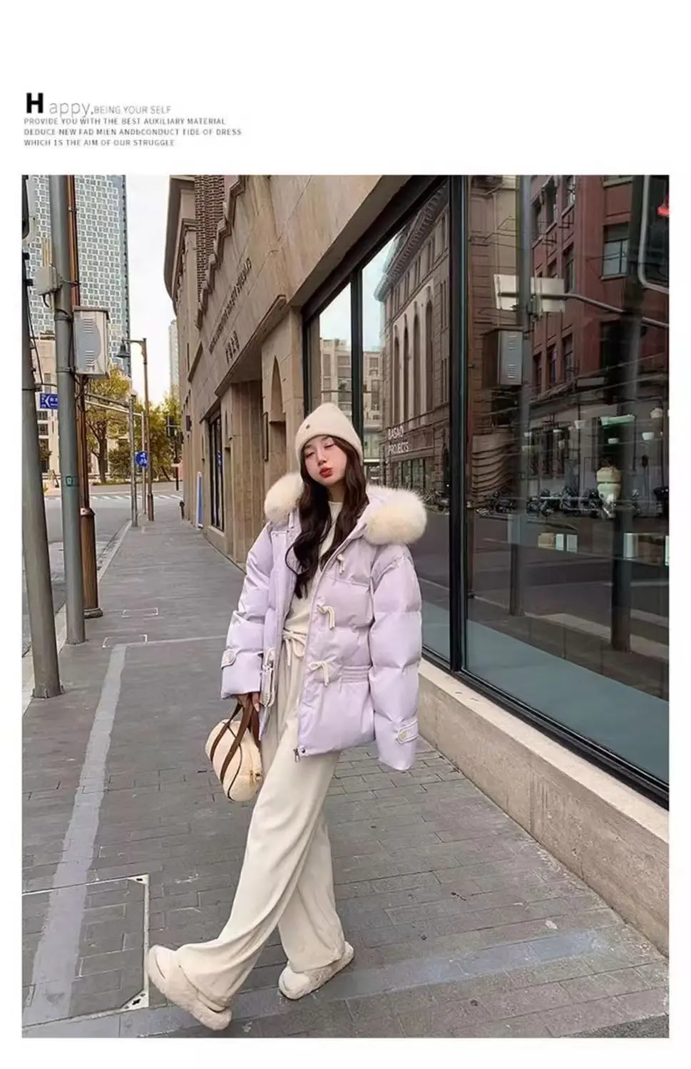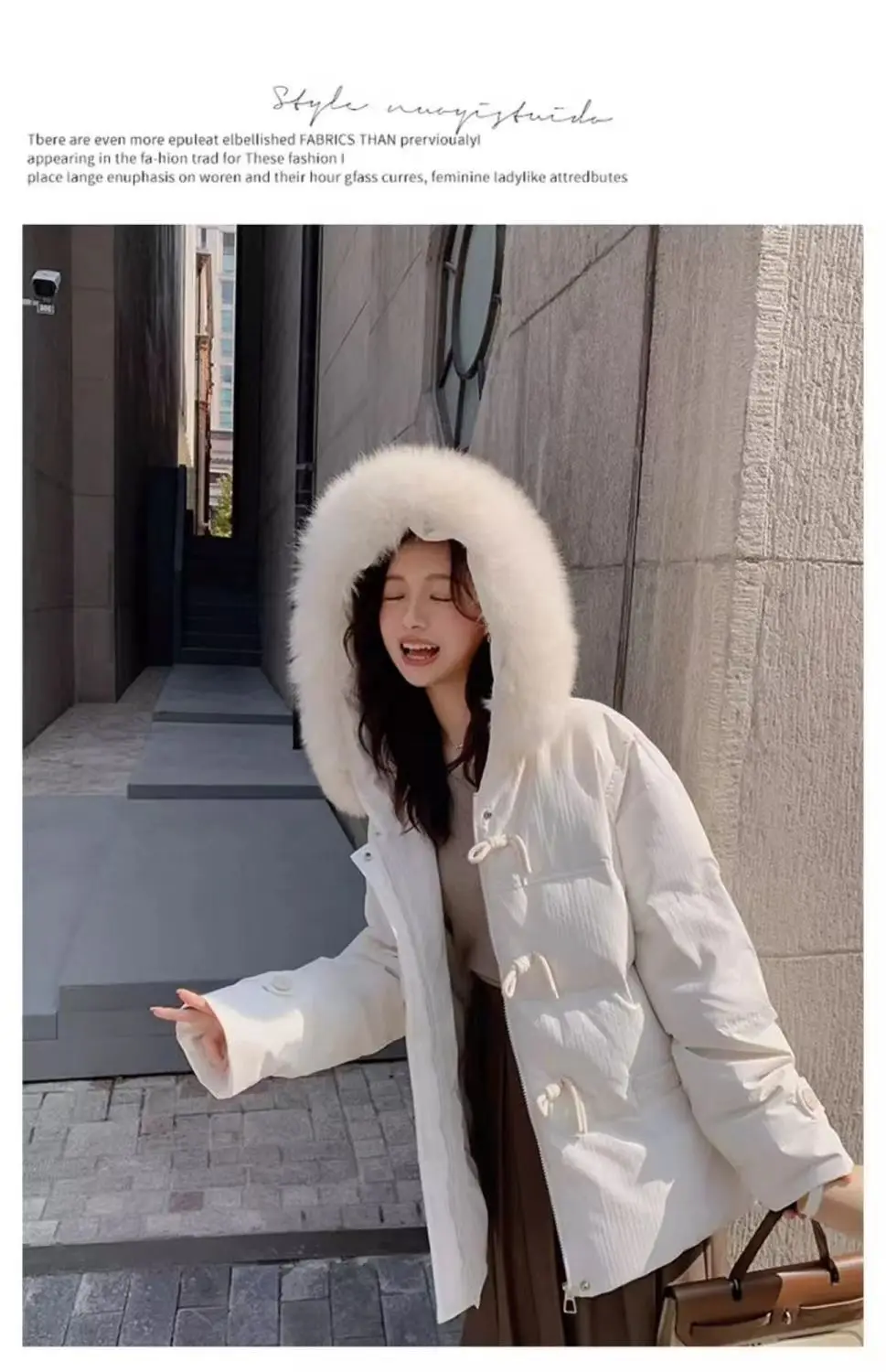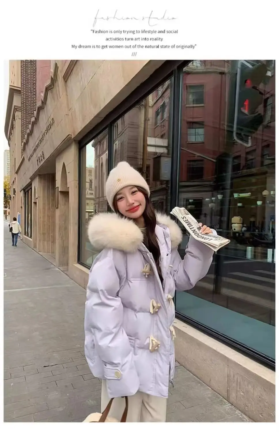Versione leggera Cotone imbottito a mano Fibbia in corno viola Vestiti di cotone Colletto di pelliccia grande allentato invernale da donna Vestiti di pane addensati 1Versione leggera Cotone imbottito a mano Fibbia in corno viola Vestiti di cotone Colletto di pelliccia grande allentato invernale da donna Vestiti di pane addensati