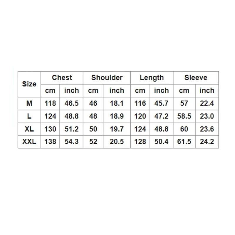 XXL: petto 54,3″, lunghezza 50,4″