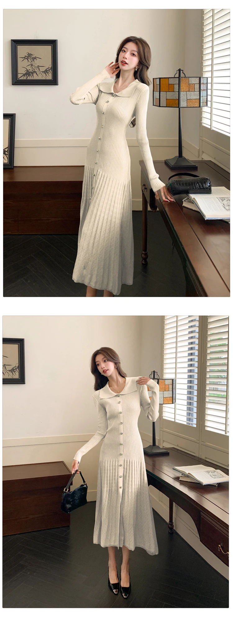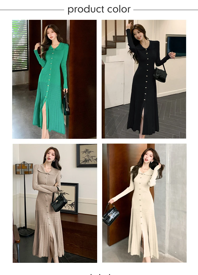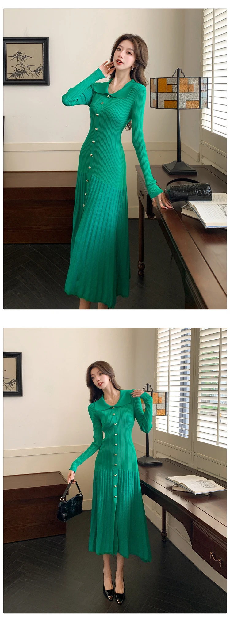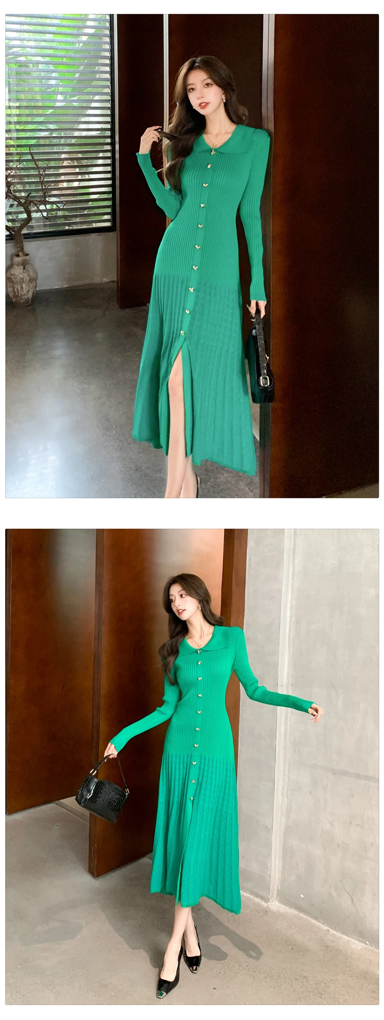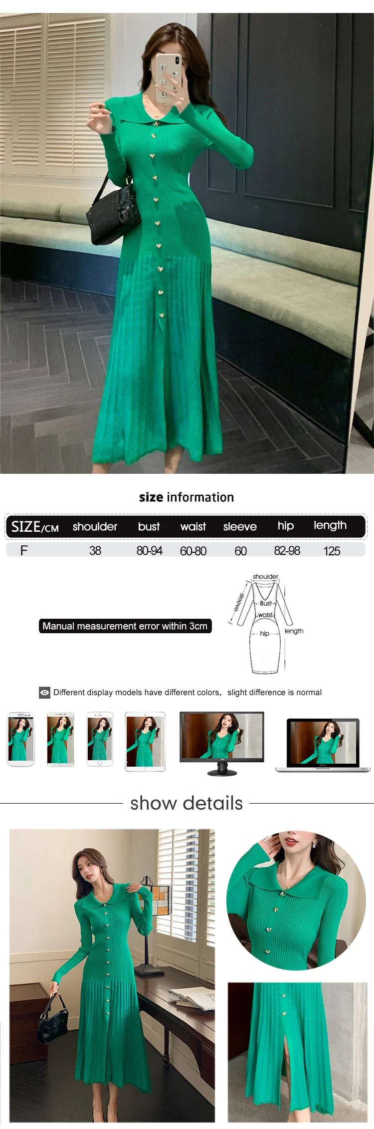 Vestiti delle donne Lavorato a maglia Risvolto Monopetto Skinny Fishtail Abito lungo Maglione Casual Elastico Robe Mujer Abiti Autunno Inverno