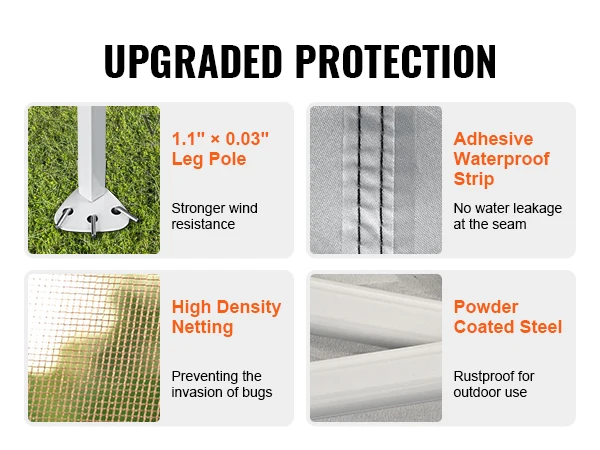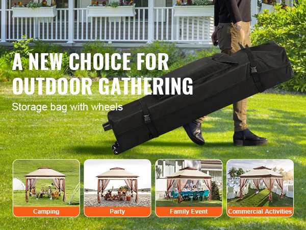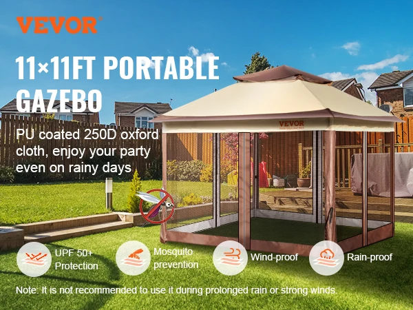 Sei pronto per la festa? Vivi all’aperto con comfort e stile utilizzando il nostro gazebo durevole e affidabile. Realizzato in tessuto Oxford 250D con rivestimento in PU, il gazebo VEVOR patio offre protezione UPF 50 +, resistenza al vento e alla pioggia ed efficace controllo degli insetti.